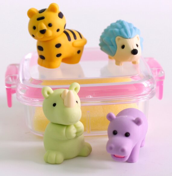 Забавні фігурні гумки IWAKO виготовлені з високоякісного каучуку у вигляді тварин. Ластики містять вставні елементи, завдяки чому вони можуть бути використані в якості навчальної та розвиваючої іграшки. Гумки IWAKO стане незамінним аксесуаром на столі школяра, студента або офісного працівника.