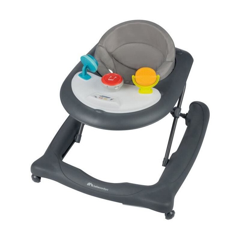 Ходунки Bebe Confort мають м'яке і зручне сидіння з тканини, а спинка забезпечує хорошу підтримку малюка. Перед сидінням розташований веселий столик із трьома різнокольоровими іграшками. Столик для занять може відтворювати 12 різних мелодій, його можна зняти з ходунків і використовувати окремо.