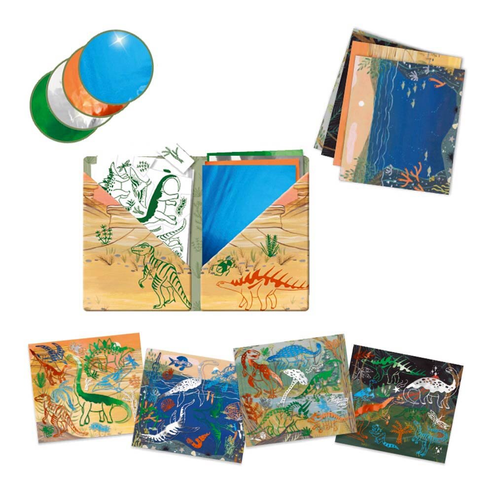 Особливості комплекту: спеціальні картки для розмальовування; металізовані листи різного кольору;підходить для дітей від 6-ти років;розвиває дрібну моторику рук і уяву. Подаруйте малюкові справжнє щастя бути художником разом з унікальним комплектом Динозаври.