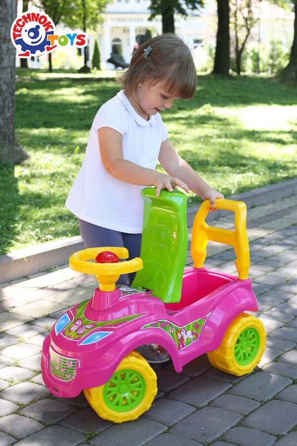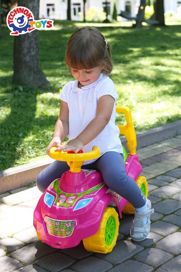 Іграшка для сучасних принцес! Яскраві кольори, "милі" наліпки, ергономічний дизайн та зручний багажний відсік - це все про «Автомобіль для прогулянок Принцеса ТехноК».