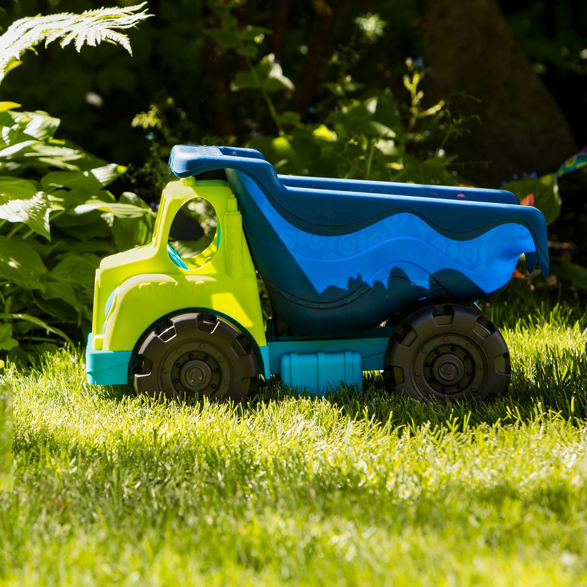 МЕГАСАМОСКИД готовий вирушати на пляж або в пісочницю, щоб возити пісок! Ваша дитина гідно оцінить цей величезний самоскид кольору лаймовий-океан, тому що це яскравий, надійний і великий автомобіль. Такий транспорт витримає будь-які витівки маленького будівельника, будь то на пляжі або в звичайній пісочниці.