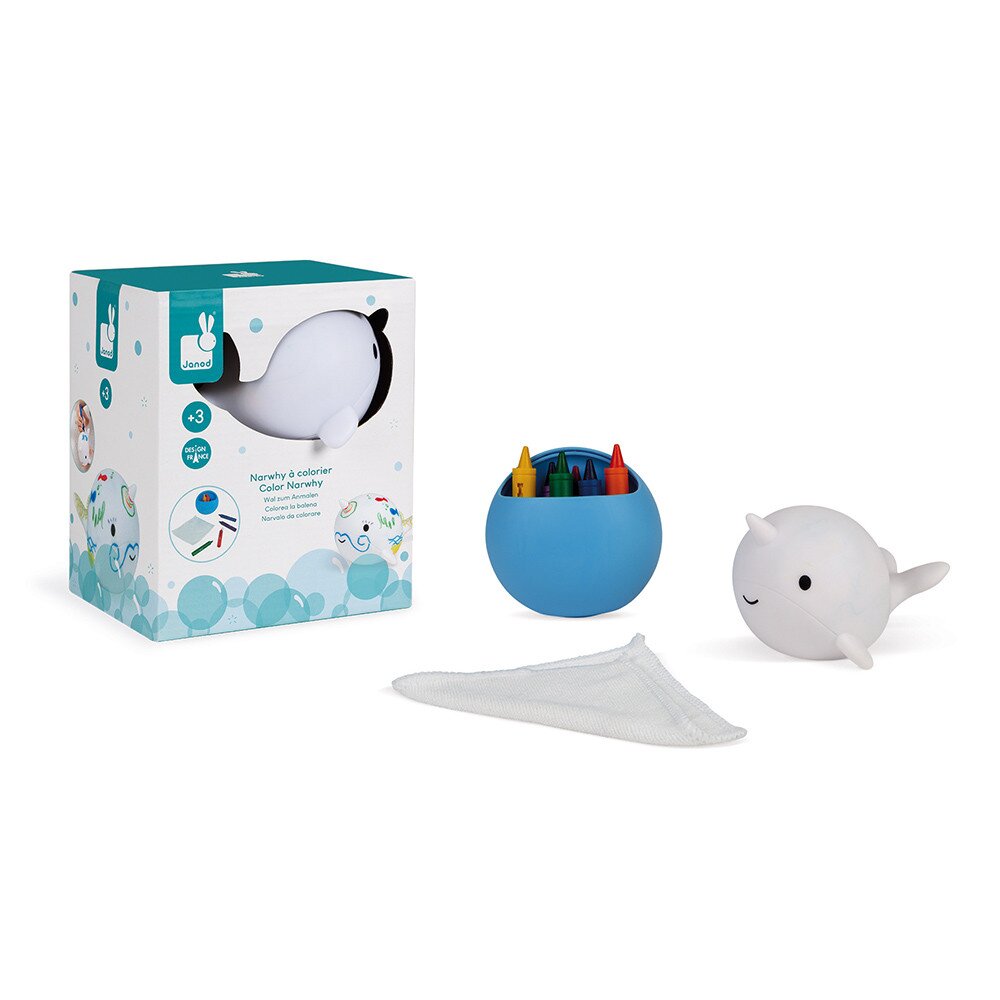 Набір для гри в воді - олівці і нарвал, якого можна розфарбовувати необмежену кількість разів! Щоб його використовувати знову, необхідно просто протерти серветкою, яка є в комплекті. Тримач для олівців можна прикріпити на стіну або на ванну за допомогою присосок.