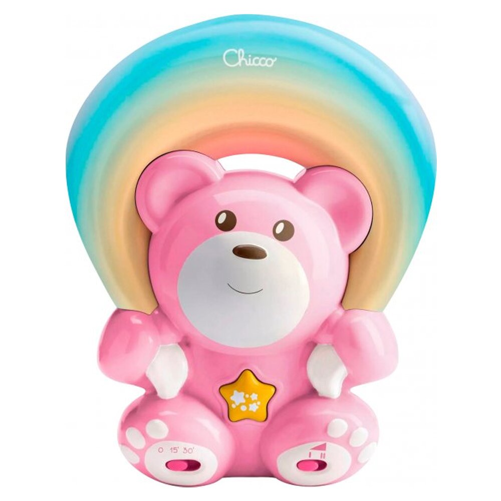 Нічник Chicco "Ведмежа під веселкою" зі світловими ефектами, в супроводі м'яких мелодій допоможе заспокоїти малюка перед сном, створить в кімнаті чарівну атмосферу.