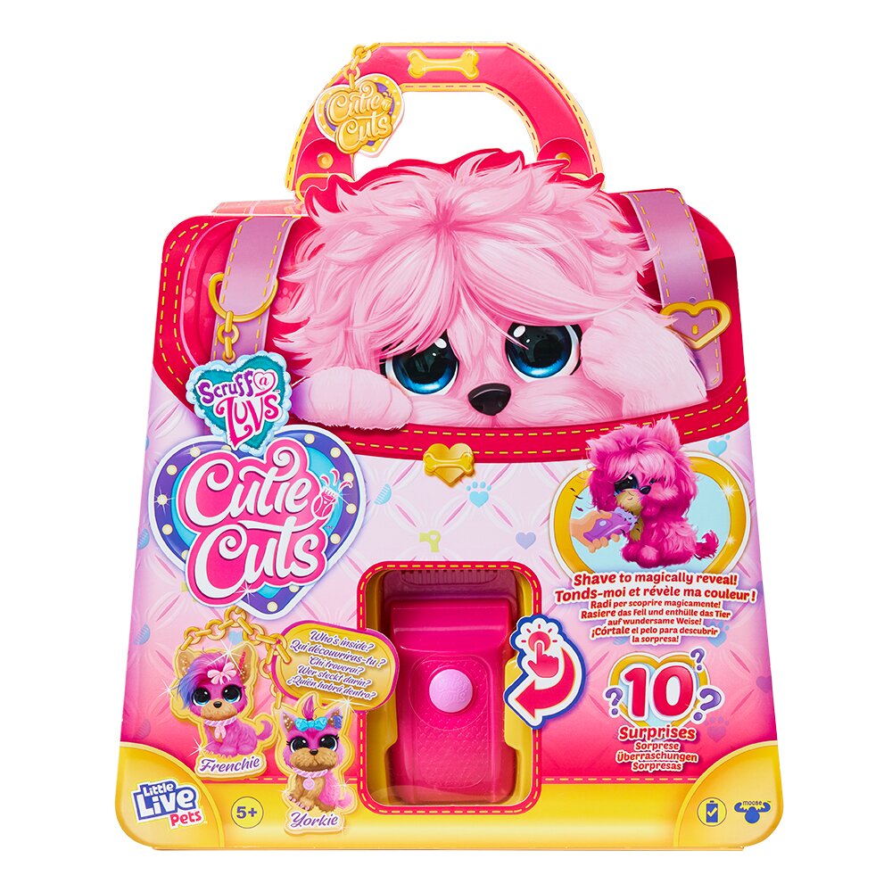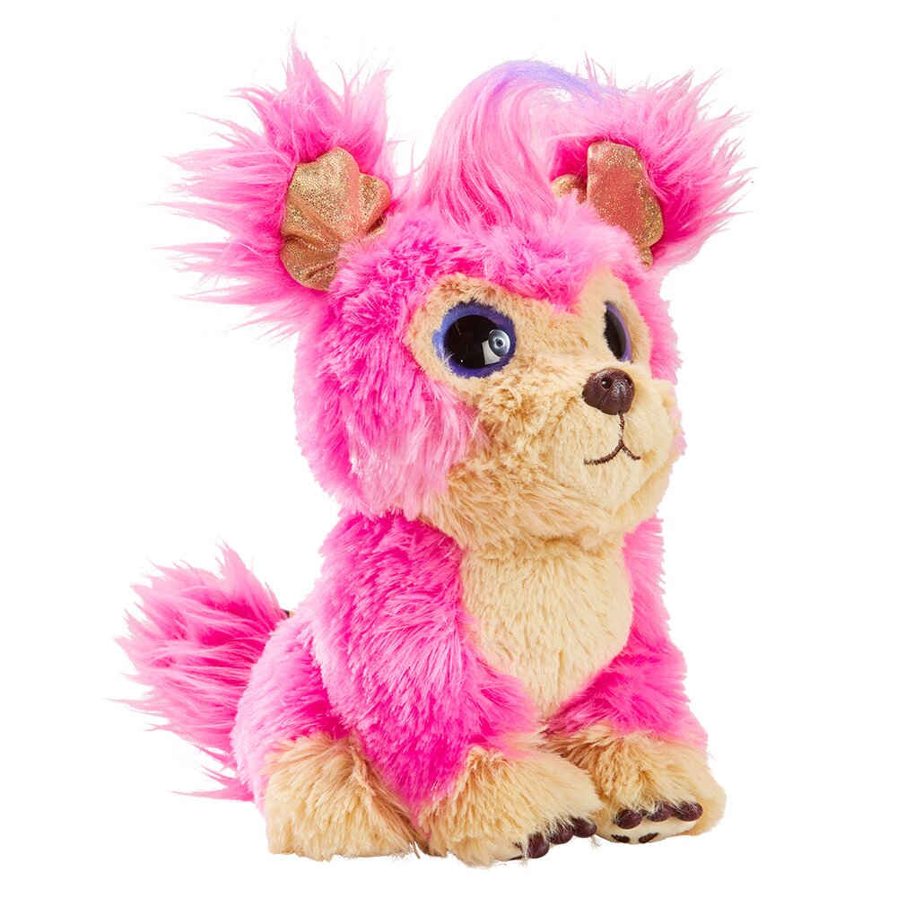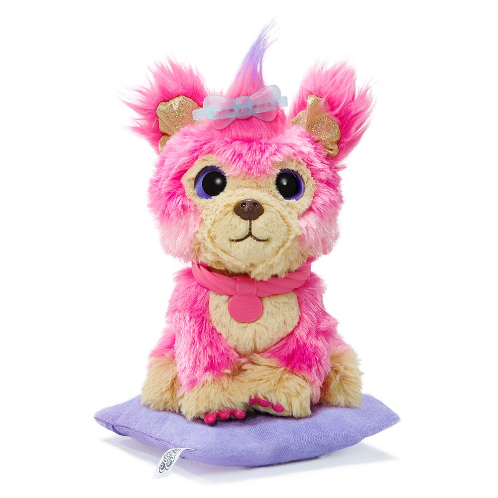 Комплектація: тваринка-сюрприз рожевого кольору; машинка для стрижки; подушка; лак; нашийник; гребінець; випрямляч для волосся; 2 аксесуари для волосся; журнал; 2 батарейки типу ААА (режим TRY ME). Матеріал: плюш.