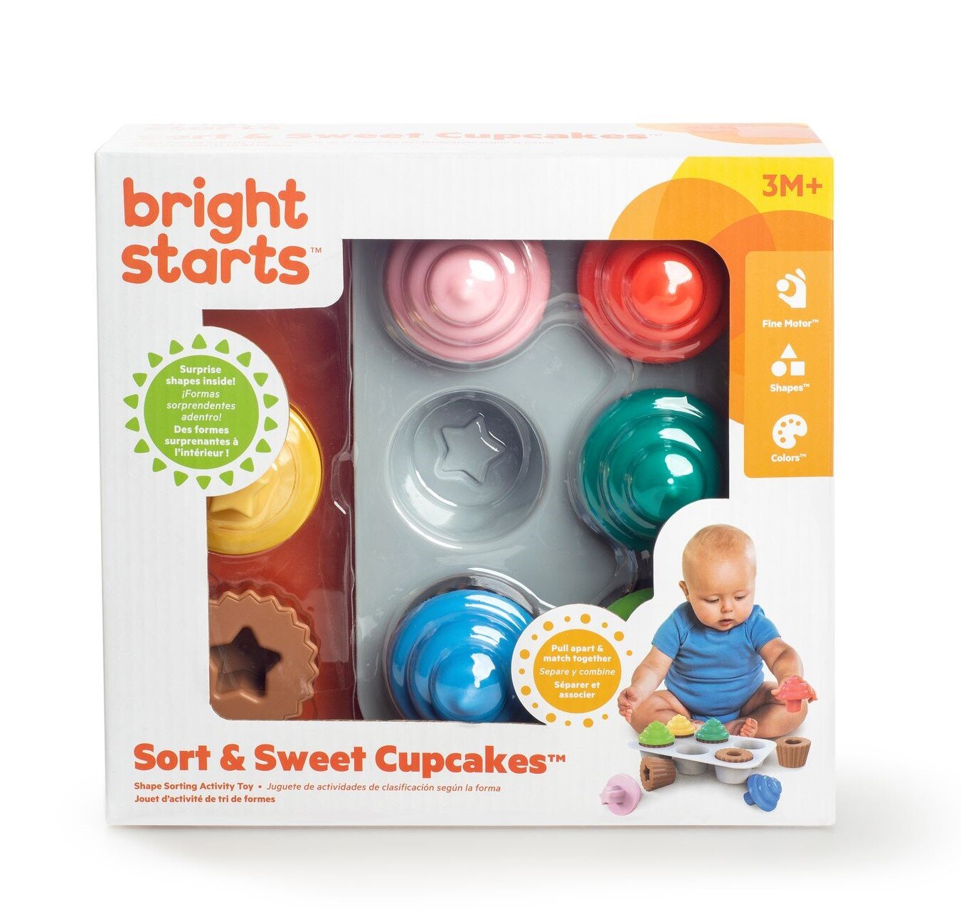 Розвивальна іграшка Bright Starts Sort and Sweet Cupcakes сприяє розвитку логіки, когнітивних і зорово-моторних навичок у малюка.