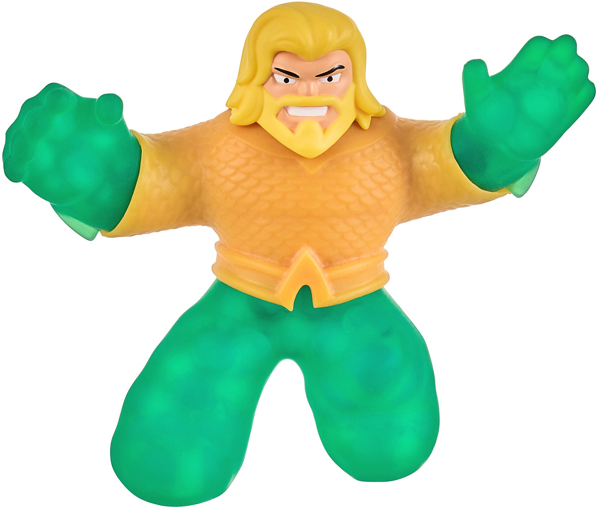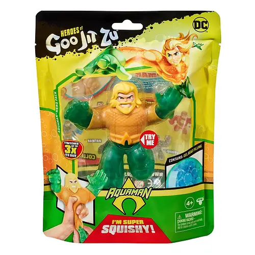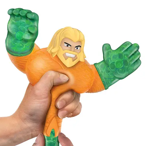 Антистрес-іграшки бувають різних видів. Одними з найпопулярніших є стретч-фігурки, які можна нескінченно стискати, розтягувати, і при цьому вони завжди повертають початкову форму. На цей раз вам пропонується повправлятися з фігуркою Аквамена від бренду GooJitZu. Ви можете розтягнути його так, що він збільшиться втричі! Усередині нього захований гель з кульками, що надає грі додаткову фішку, розслаблюючи та даруючи приємні відчуття рукам.