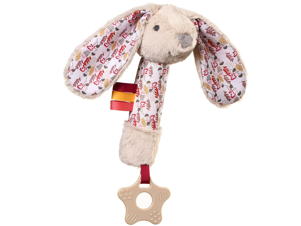 BabyOno Кролик Мілі - м'яка іграшка з пищалкою та прорізувачем. Різні текстури та внутрішній стискач розвивають пізнавальні навички дитини.