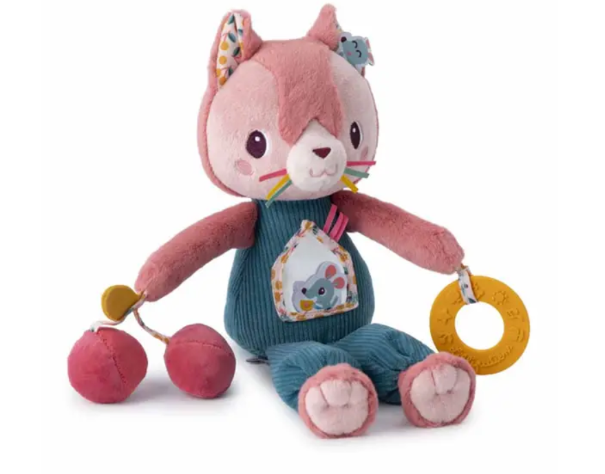 Завдяки м'яким і плюшевим тканинам і м'якому прорізувачу іграшка з розвиваючими елементами Lilliputiens "Котик Жанетт" (83553) дарує приємні тактильні відчуття. Потаємні елементи та різноманітні текстури стимулюють ігровий процес.