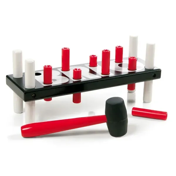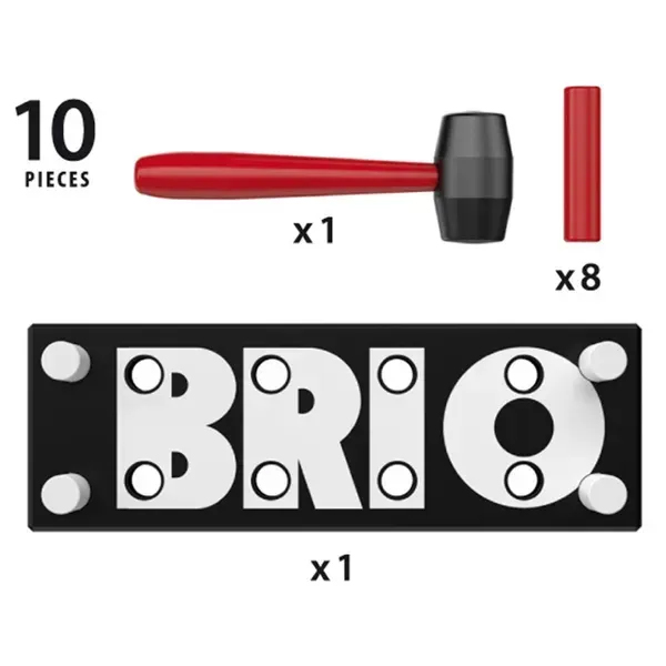Іграшка-забивалка BRIO чорна (30515) — класична дерев'яна іграшка для активної та захопливої гри. У наборі є молоточок із дерев'яною ручкою та 8 кольорових кілочків, які потрібно забивати в отвори.