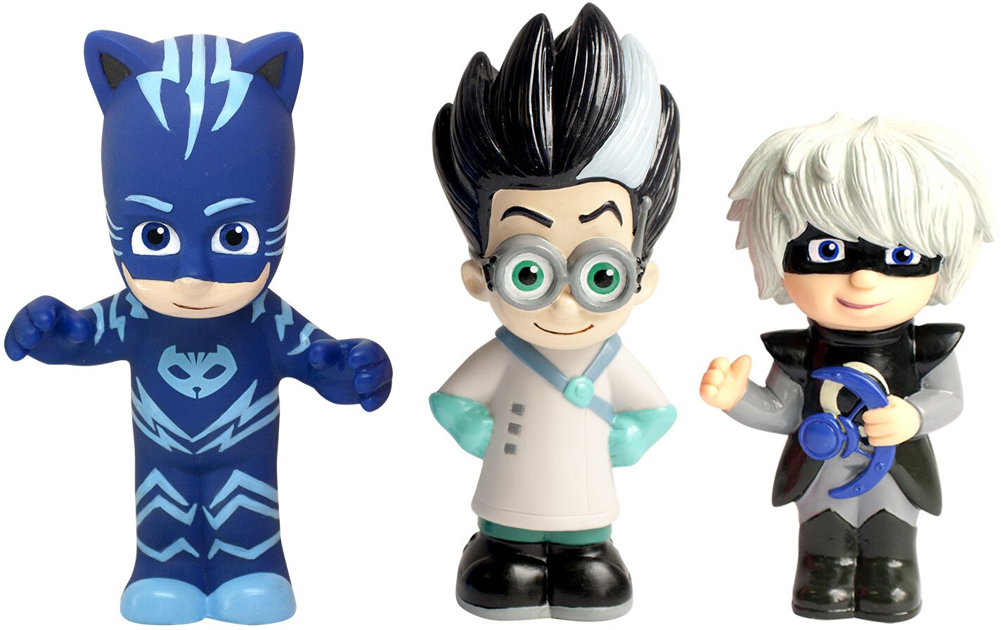 Барвисті іграшки, подібні до Героїв у масках, перетворять купання вашої дитини на захопливу гру! Кетбой, Ромео й Місячна дівчинка пищать і бризкаються водою. З ними малюкові не доведеться нудьгувати! Він пускатиме веселі струмочки води та розігруватиме кумедні сценки з улюбленими персонажами.