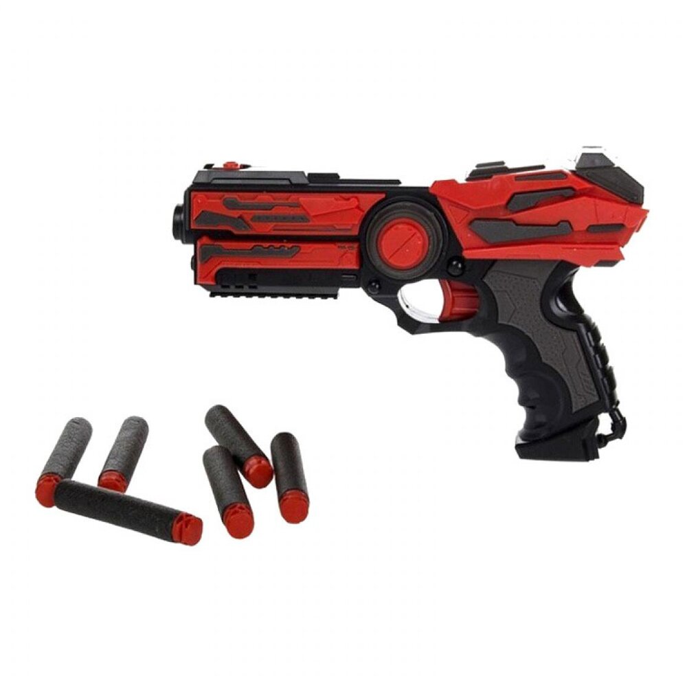 Іграшкова зброя Бластер 6-зарядний від бренду Qunxing – це саме те, чого так не вистачало під час воєн і битв з ворогами й прибульцями. Саме бластер допоможе тобі завоювати перемогу. Бластер в червоно-чорних кольорах має модний дизайн. Сила пострілу не змусить розчаруватися. Рукоять зручна й підходить для дитячих рук, можна грати з ним без найменшого дискомфорту. Кулі вилітають на відстань більше 11-13 метрів. Всі кулі гумові і не несуть небезпеки для дитини та усіх навколо. Гра сприяє розвитку дрібної моторики і уяви.