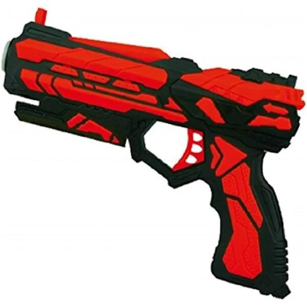 Шестизарядний іграшковий бластер. Стильна та потужна зброя подарує своєму власникові неймовірні емоції! Зручний у користуванні бластер є безпечним для здоров'я дитини, оскільки виготовлений із якісних матеріалів, а кулі, що входять до набору, м'які, й тому можете бути спокійні не тільки за цілісність здоров'я дитини, а й меблів.