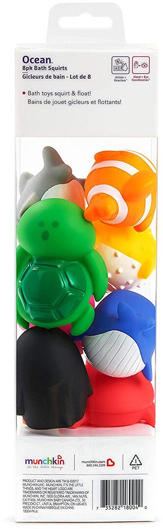 Іграшковий набір для ванної Океан від Munchkin пропонують простий, інтерактивний спосіб діставати велике задоволення в компактному просторі. З цим пакетом із чотирьох морських тварин ви можете уявити морську гру та розповісти своїй дитині про морських істот. Яскрава іграшка для ванни плаває, бризкає водою, а також має розміри, які підходять для маленьких ручок, щоб легко хапати та стискати.