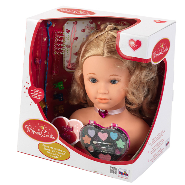 Волосся ляльки можна не тільки розчісувати, а й мити, тож вона завжди буде готова до нових модних експериментів! Цей комплект допоможе маленьким візажистам розвивати навички краси та стилю. Головка "Софія" заввишки 27 см містить аксесуари для волосся, як-от затискачі та намистини, а також косметику: блиск для губ, тіні для повік і рум'яна, що пройшли дерматологічне тестування.