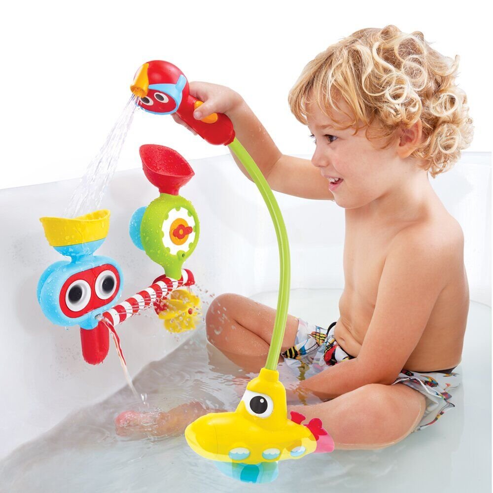Субмарина з додатковою станцією буде цікава малюкам від півроку. Пластиковий підводний човен з справжнім мотором, до якого прикріплений шланг з насадкою, що нагадує насадку для душу. В комплект входить додаткова станція для створення різноманітних водних ефектів.