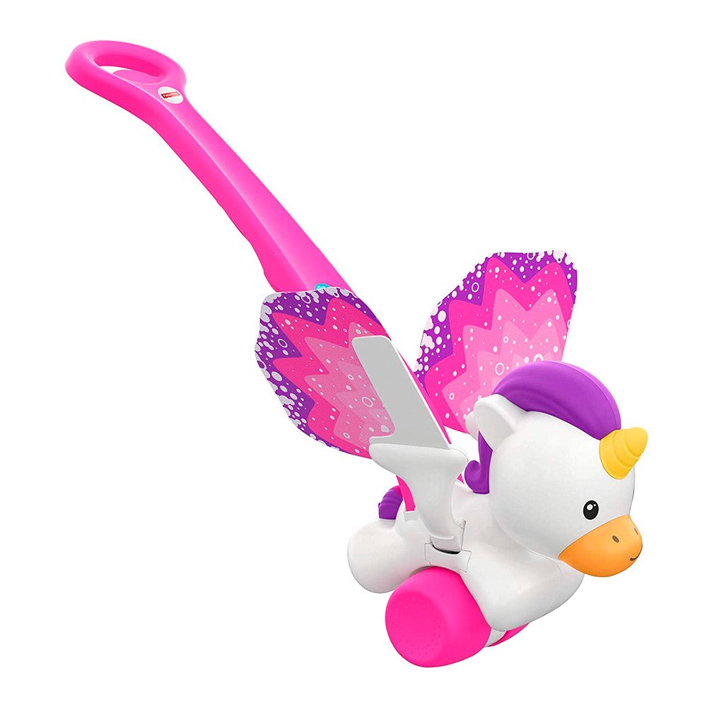 Іграшка-каталка Fisher Price Единоріг — це чарівний та казковий друг, в компанії якого малюк із задоволенням зробить свої перші кроки і вирушить на захопливу прогулянку. Пара коліс каталки їде плавно; іграшка добре маневрує; масивна ручка з утримувачем; під час їзди крила єдинорога рухаються вгору-вниз і лунає приємний дзвін.