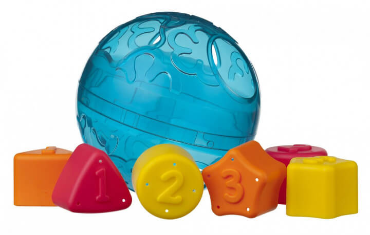 Сортер Playgro - це м'ячик з шістьма різноманітними отворами, до яких потрібно підібрати відповідні геометричні фігури. Яскраві кольори допоможуть маляті розвивати сприйняття кольорів, а об'ємні цифри, які нанесені на поверхню фігур, дають можливість запам'ятовувати їх під час гри і вчитися рахувати.