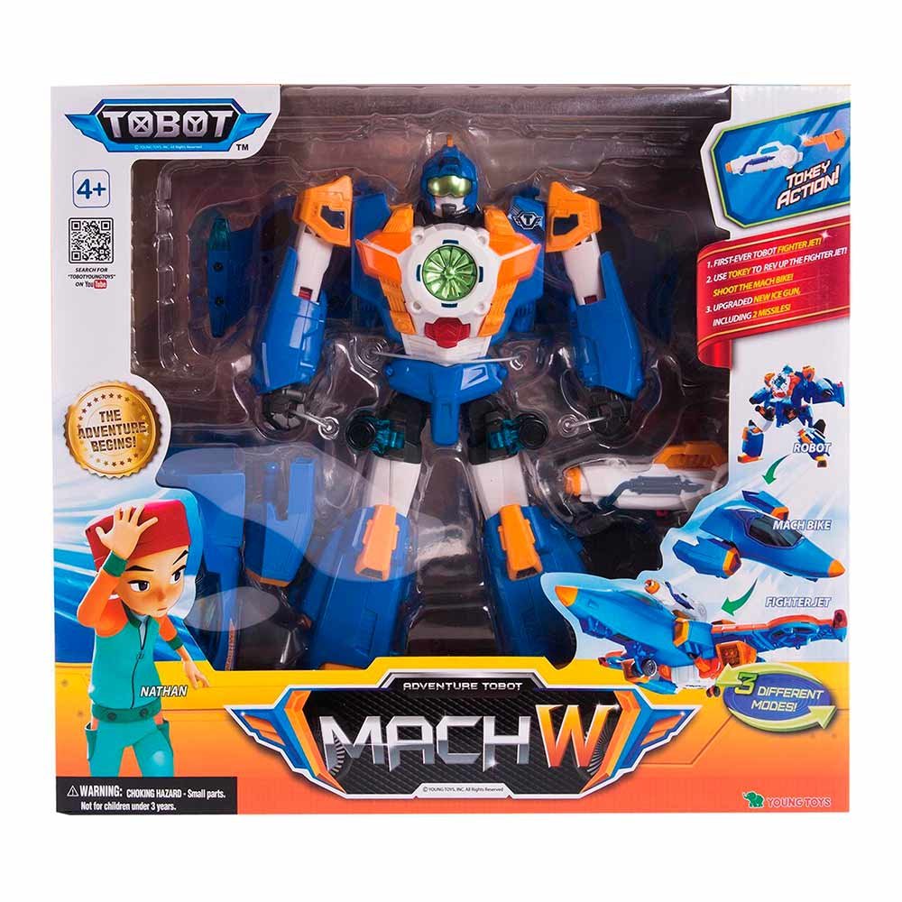 Інтерактивний робот-трансформер S4 Mach W запрошує юного шанувальника відомого мультфільму Тобот в захопливу гру. Робот трансформується всього за кілька рухів на швидкий винищувач. Оптимальні розміри робота підходять для дитячої руки. Гра з роботом розвиває дрібну моторику, координацію рухів, просторове сприйняття, образне мислення та уяву.