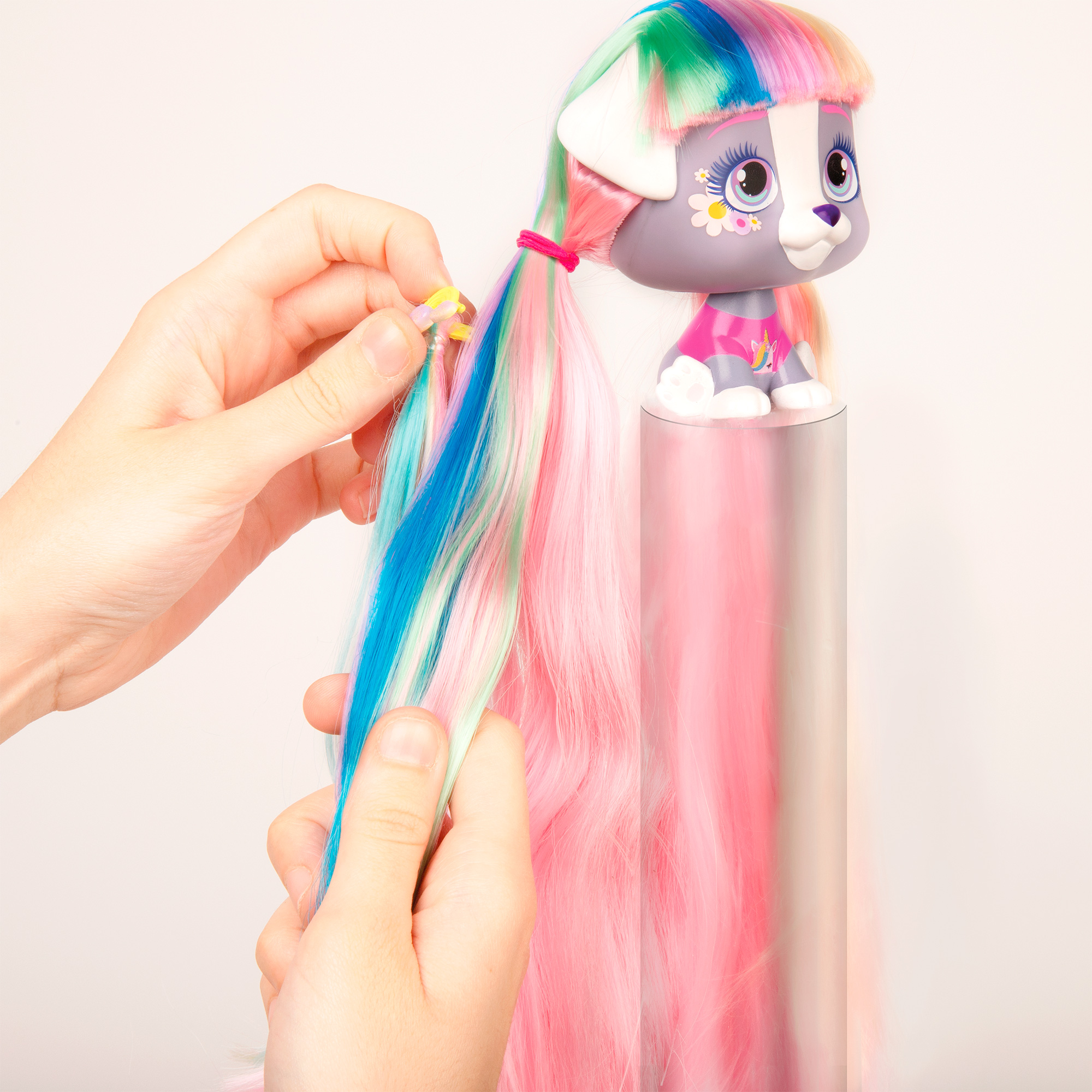 Ігрова фігурка IMC toys VIP Pets S1 Модний улюбленець - це найкрутіший і наймиліший домашній улюбленець з надзвичайно довгим волоссям! Ця VIP-персона обожнює зачіски у різних стилях залежно від настрою та приводу. Але їй потрібна ваша допомога, щоб створити ідеальну цибулю! Здійсніть 10 кроків до перетворення маленької красуні!