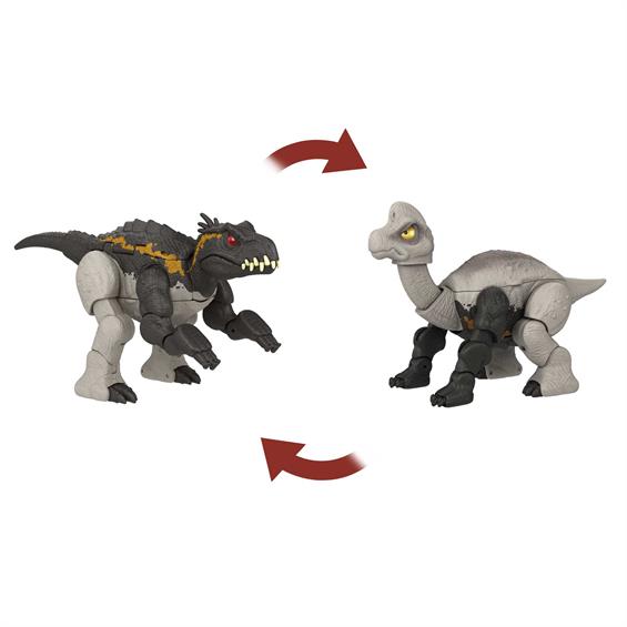 Ці фігурки динозаврів з фільму "Світ Юрського періоду" належать до серії іграшок-трансформерів "Несамовите перевтілення". Вони розвивають уяву, оскільки один динозавр перетворюється на іншого за 16 простих кроків! Це дві фігурки в одній! Певні частини динозавра подовжуються, щоб шия чи хвіст стали довшими, а фігурка набула унікальних рис.