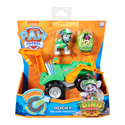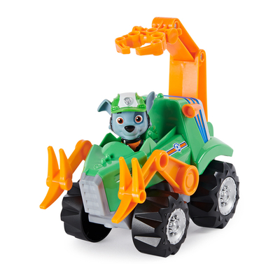 У цей набір разом з унікальним транспортним засобом входить цуценя Роккі і мініатюрна фігурка таємничого динозавра! Завдяки деталям у стилі динозаврів, робочим інструментам, потужному мотору і великим колесам для підкорення будь-якої місцевості, рятувальний автомобіль Роккі готовий до роботи!