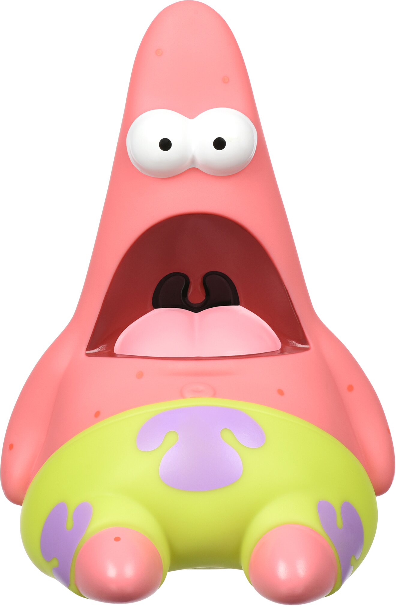 Ігрова фігурка SpongeBob Masterpiece Memes Collection Surprised Patrick зроблена з приємного на дотик пластику, іграшка упакована в досить стильну коробку, на якій відзначено, що це іграшка 1 серії. Фігурка входить до колекції пластмасових іграшок SpongeBob Masterpiece Memes Collection, до якої входять ексклюзивні герої мультфільму: Губка Боб із веселкою, Губка Боб неандерталець, здивований Патрік і красень Сквидвард.