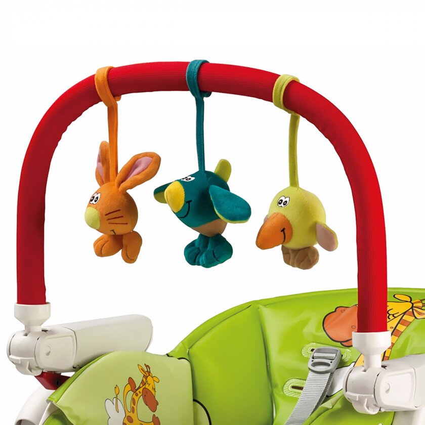 Ігрова панель Peg Perego Siesta для стільчика для годування Peg Perego Zero 3. Панель являє собою м'який бампер із трьома підвісними м'якими іграшками: зайчик, акула та пташка. Сприяє розвитку дрібної моторики рук і тактильних відчуттів. Іграшки та покриття бампера виготовлені з екологічних матеріалів.