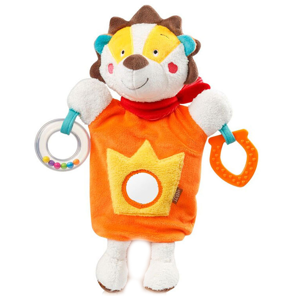 Ігрова рукавичка Fehn Левеня (67699) - це одночасно м'яка іграшка, гризунець, брязкальце та герой лялькового театру. Виготовлена з м'якого яскравого текстилю (махра), силіконового наповнювача, міцного та безпечного пластику. Іграшку можна прати та сушити. Вона розвиватиме уяву дитини, кольорове сприйняття, тактильні відчуття, слух та зір.