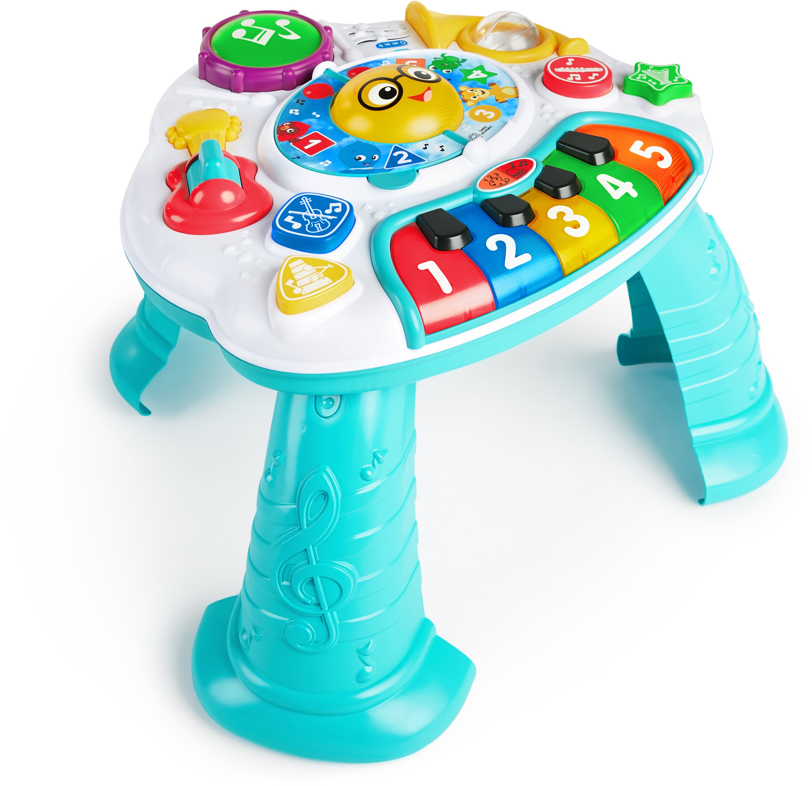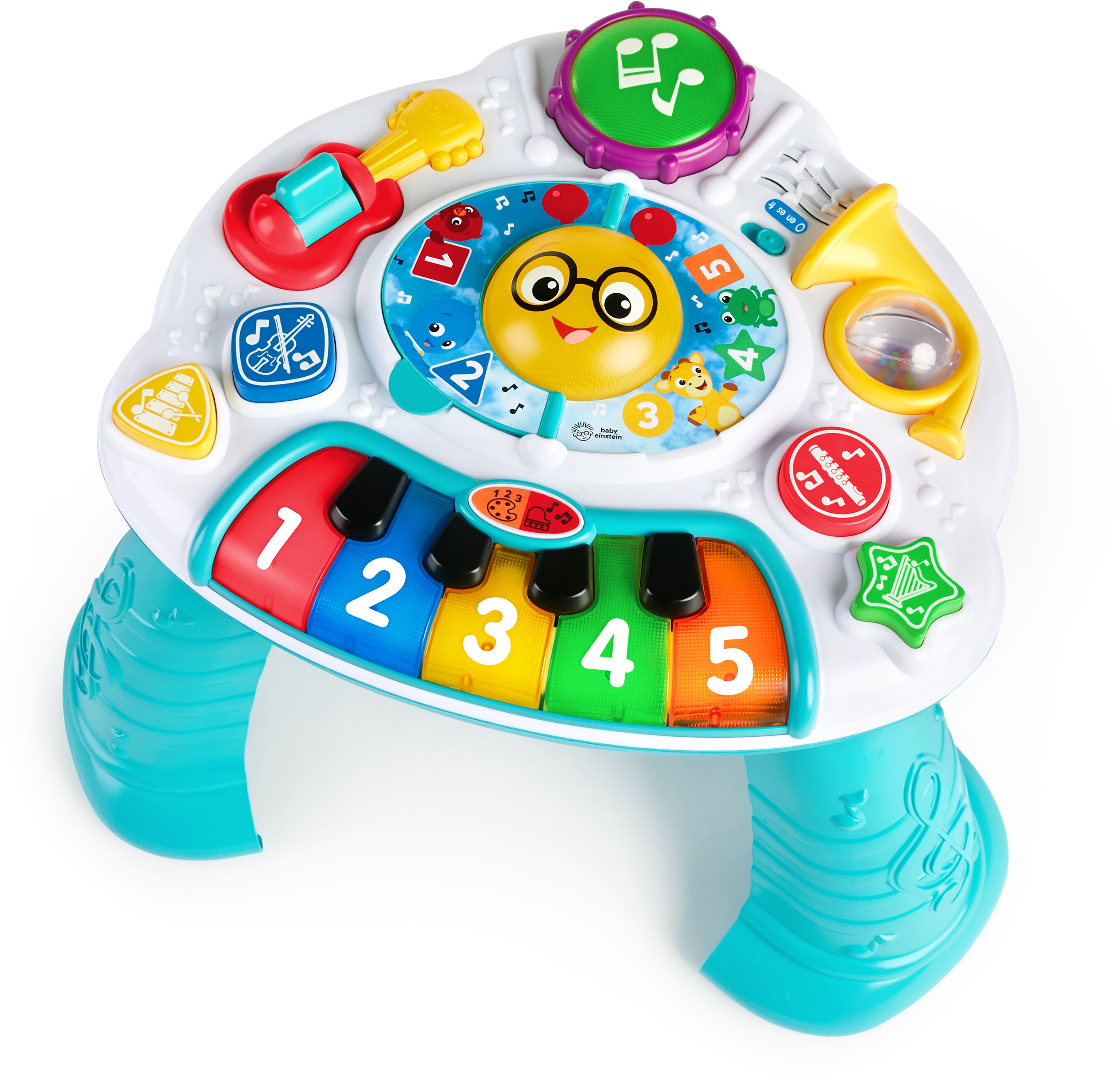 Особливості навчального режиму: 3 мови — англійська, французька та іспанська. З натисненням на гітару, барабан і валторну звучить назва інструментів і рахунок від 1 до 5. Клавіші піаніно активують звучання цифр і барв. 4 великі кнопки для вивчення форм, кольорів і назв інструментів.