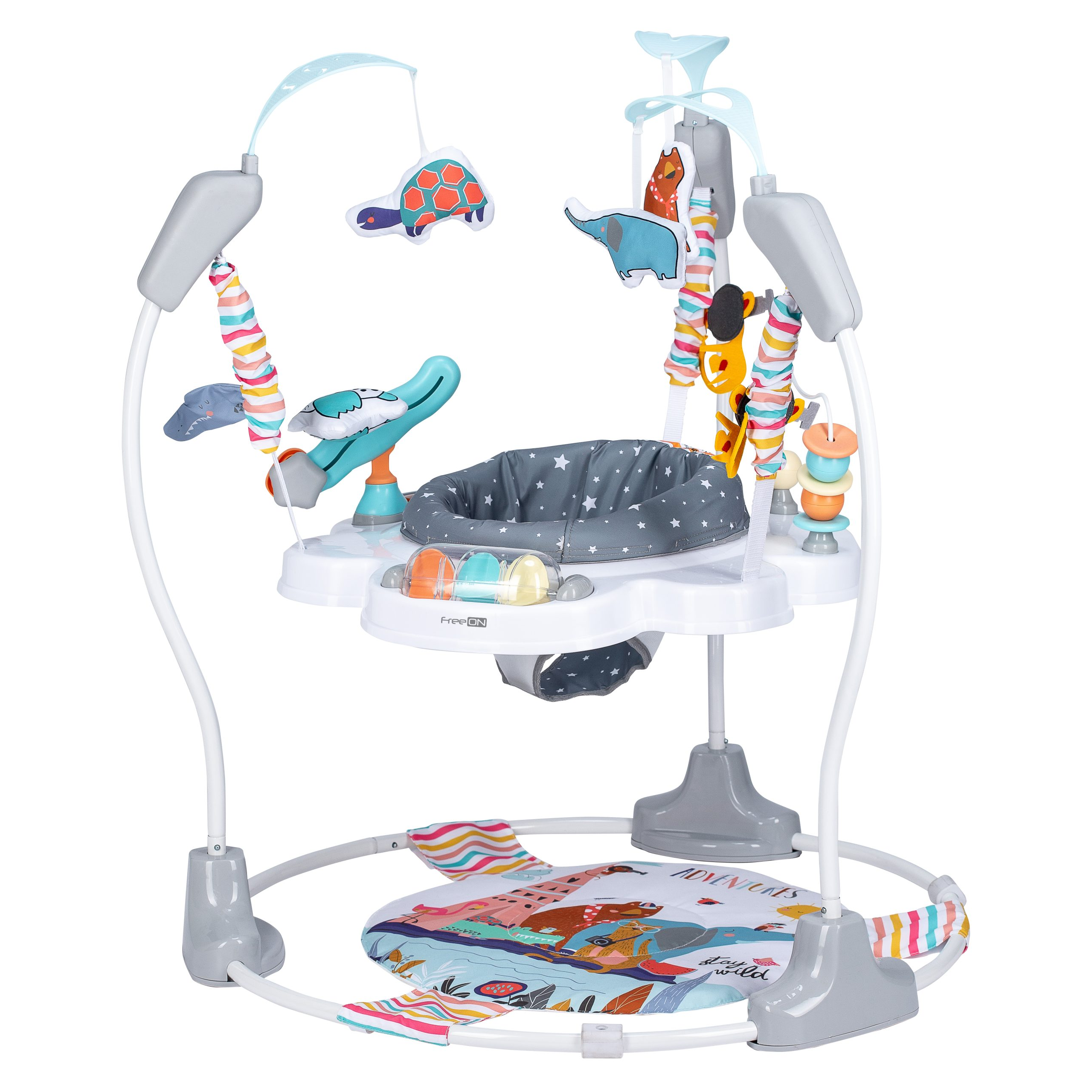 FreeON Jump&Play Jumperoo створений для маленьких цікавих дослідників. Цей чудовий центр активності дозволяє вашій дитині крутитися, підстрибувати та досліджувати іграшки самостійно.