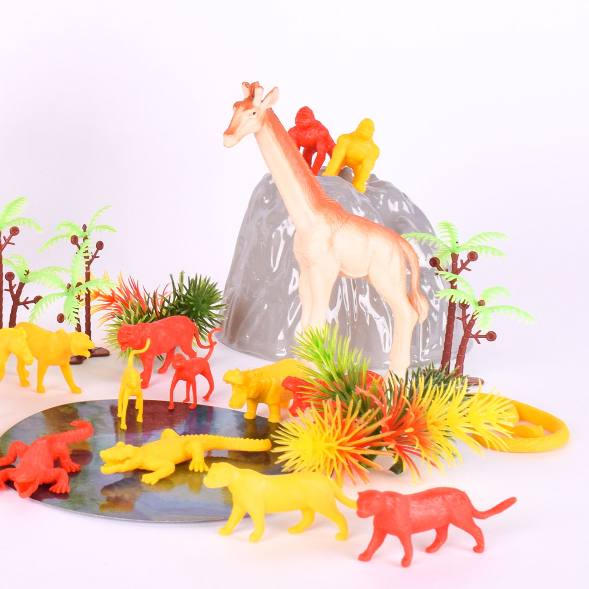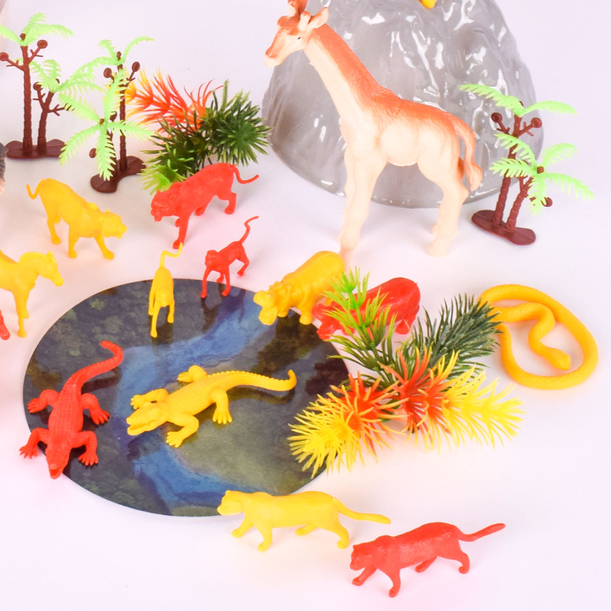- 38 предметів! Різноманітні дикі тварини: жирафа, слон, лев, бегемот, крокодил та багато інших! А ще різноманітні дерева та кущі для створення навколишньої природи.