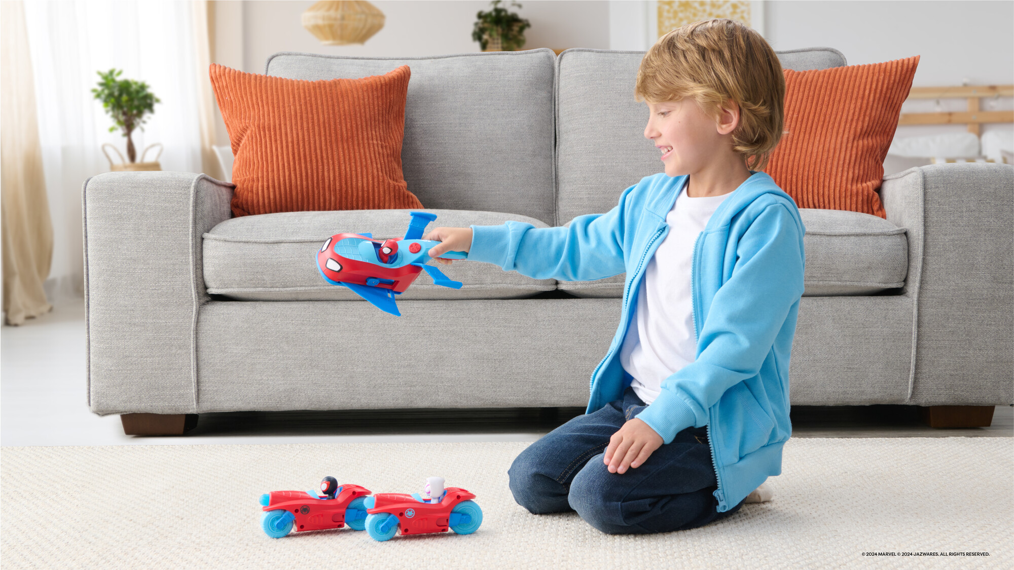 Розділяйтесь чи катайся разом зі Спліт-гонщиком MARVEL Spidey and His Amazing Friends Spidey Team. Завдяки Spidey, Spin і Ghost-Spider. Це 22 сантиметрова спліт команда що розбивається на три окремі машини.