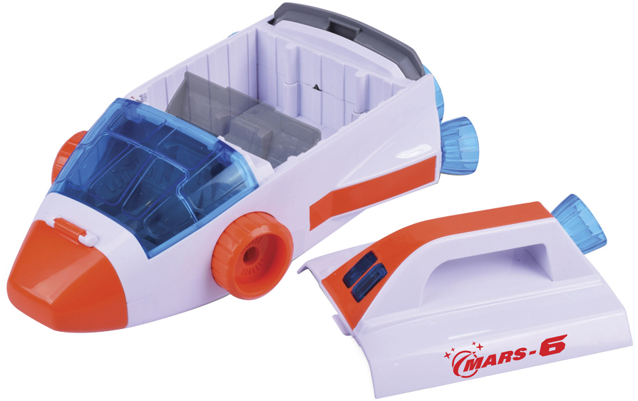 ОСОБЛИВОСТІ ІГРОВОГО НАБОРУ ASTRO VENTURE MARS SHUTTLE: можна зістиковувати з іншими іграшками із серії Astro Venture Mars Mission; ретельне опрацювання всіх деталей; світлові ефекти; звукові ефекти; для роботи необхідні 2 батареї типу AAA на 1.5 В (входять до комплекту).