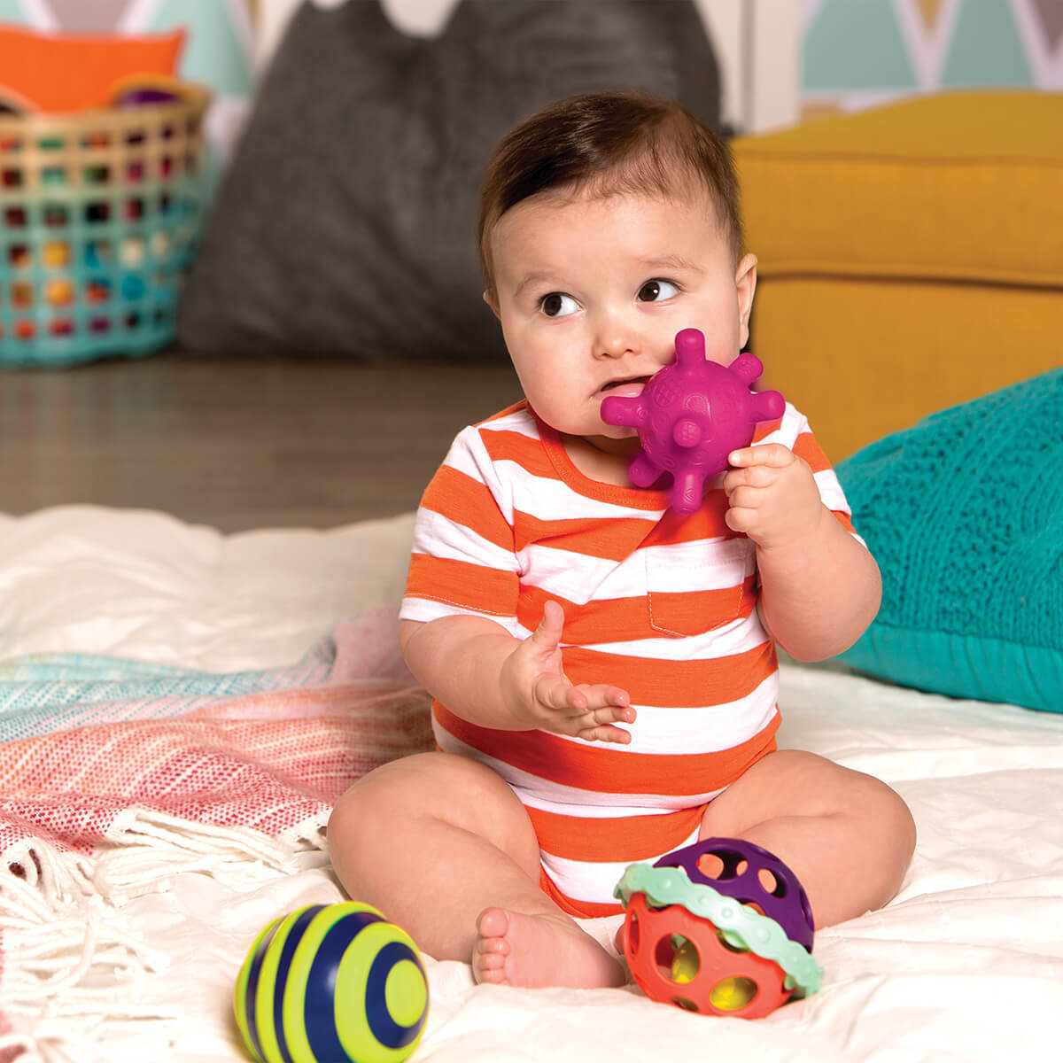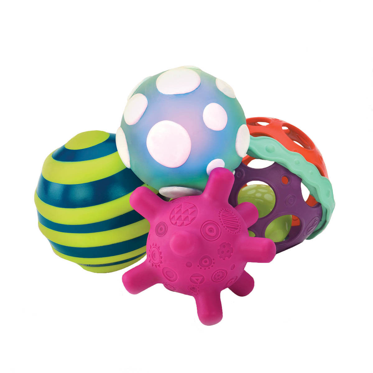 Ігровий набір Battat Зоряні кульки (BX1462Z) - чудова іграшка для дитини. В наборі чотири неповторних яскравих кульки з цікавим дизайном! Кожна кулька має неповторний характер і свою особливість. Наприклад, у кульці з горбками при падінні будуть горіти вогники, кулька зі спіралями може пищати, кулька з голочками стане справжнім "рятівником" для тих малюків, у яких ріжуться зубки, а кумедна кулька з отворами чудово поміститься в маленькій дитячій ручці.
