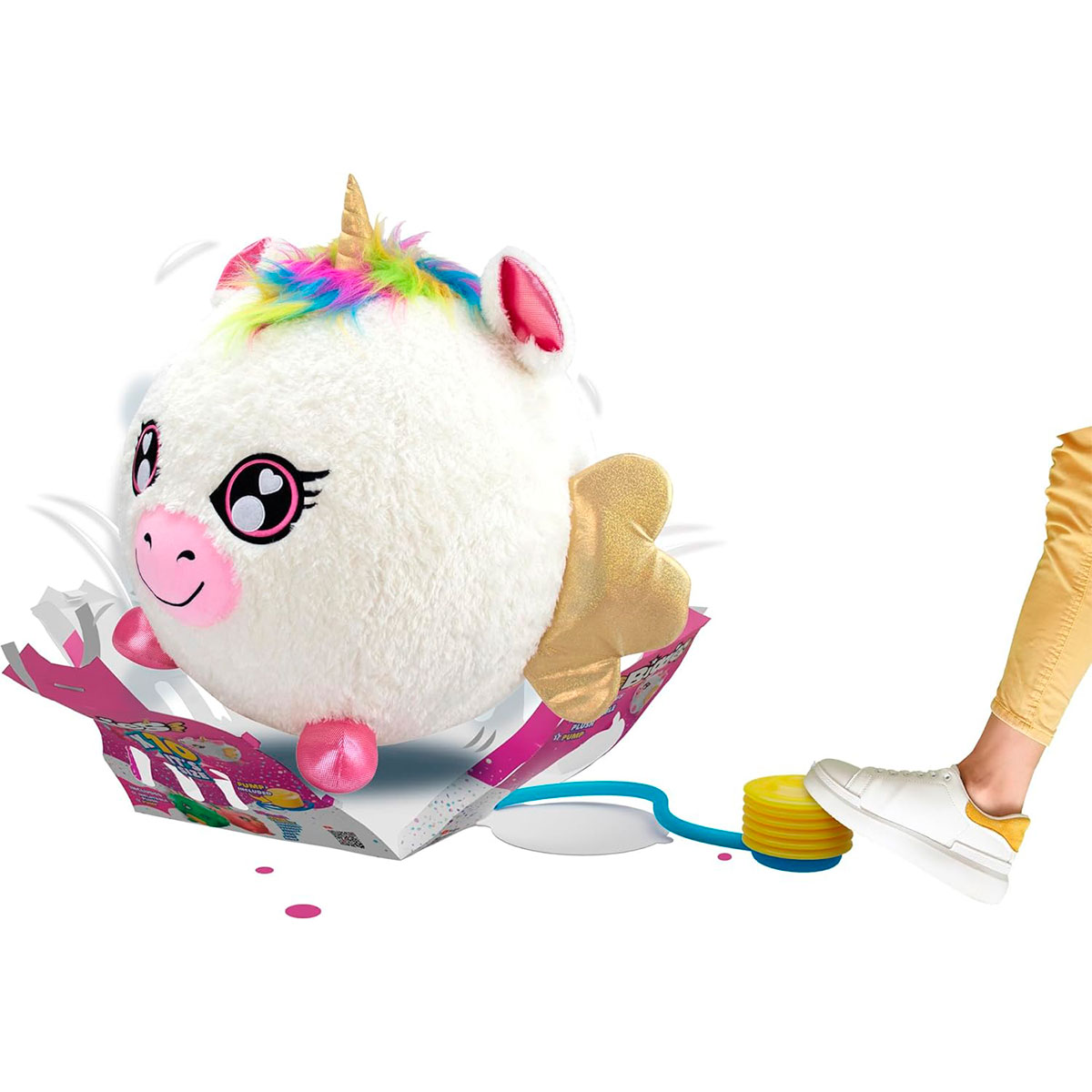 Ігрові набори BIGGIES поєднують в собі переваги м’якої іграшки та надувного м’ячика. Гра починається вже з розпакування: зніміть плівку з коробки, відкрийте двері з насосом, і починайте накачувати повітря. Іграшка надувається, коробка відкривається, а персонаж з’являється з крутим ВАУ-ефектом! Починайте веселу гру і насолоджуйтеся гарним настроєм на весь день!