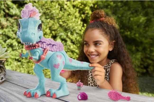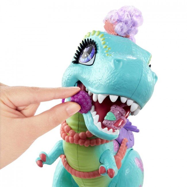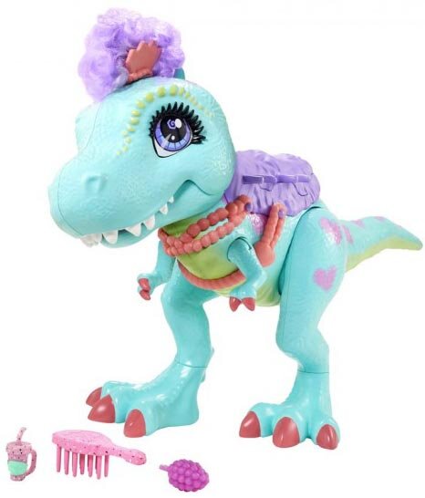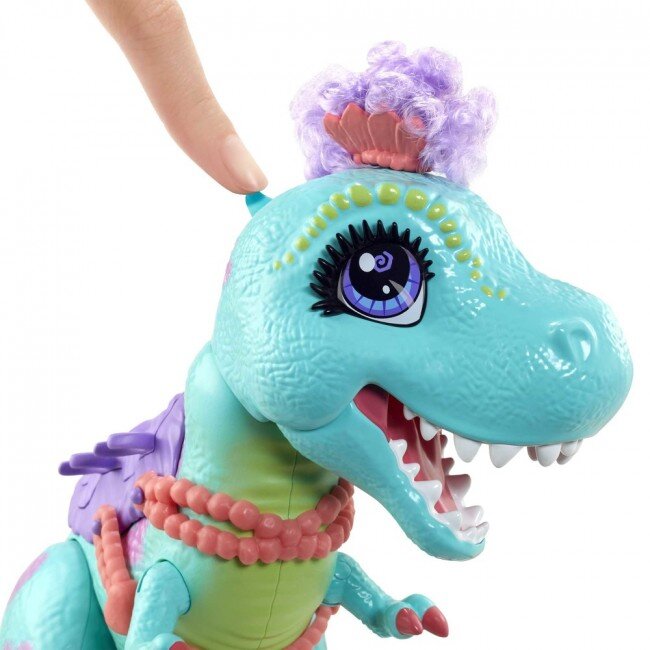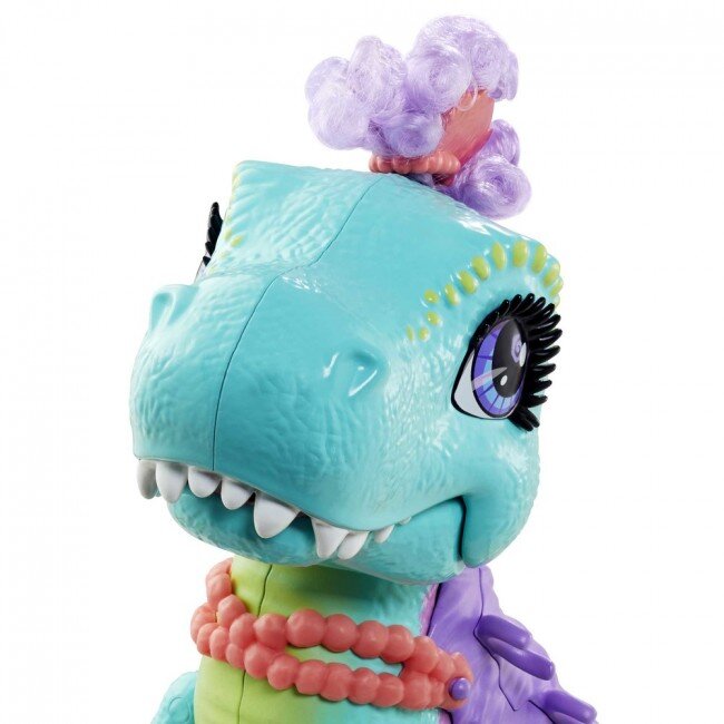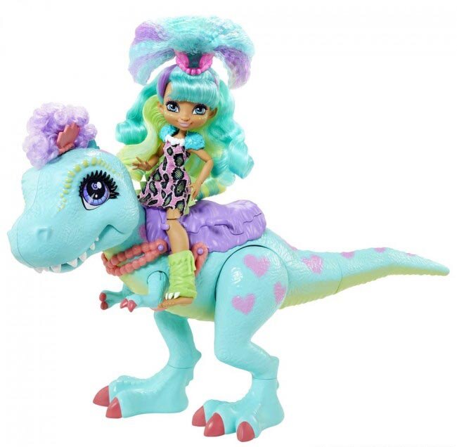 З ляльками й ігровими наборами колекції Cave Club діти можуть подорожувати назад у часі та вирушати в неймовірні пригоди за участю улюблених доісторичних персонажів, однією з яких є Красуня Тиранозавр (або скорочено Тира)! З двомісним сідлом цей динозавр може перевозити улюблених ляльок Cave Club (продаються окремо) або вирушити на пошуки пригод наодинці. Коли настане час для відпочинку, діти можуть почастувати Тиру смакотою — для цього просто натисніть важіль на шиї, щоб відкрити або закрити рот цієї дино-красуні!Створюйте нові яскраві образи Тиранозаврика Cave Club за допомогою гребінця й накладного волосся, а потім сідлайте її й знову вирушайте в дорогу.