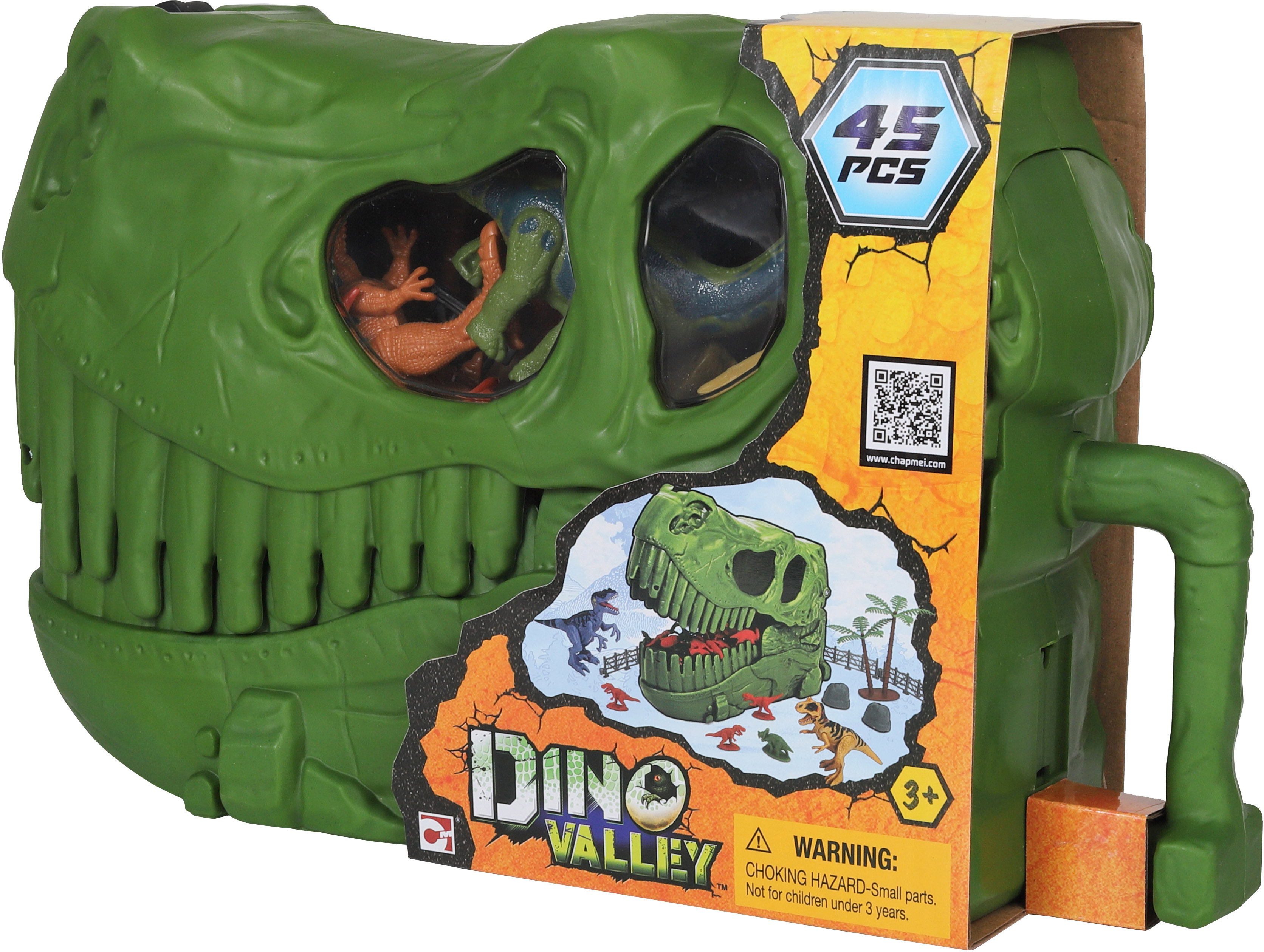 Ігровий набір Dino skull bucket перетворить дитячу кімнату в справжній вольєр з полчищами динозаврів. Унікальна коробка у вигляді голови тиранозавра зберігає в собі цілу колекцію хижих і травоїдних іграшкових динозаврів. Діти зможуть придумати нескінченну кількість сюжетних ігор, занурившись з головою в стародавній світ юрського періоду. Фігурки динозаврів різного розміру дозволять розгортати цілі баталії між древніми тваринами, які кожен день борються за своє виживання.