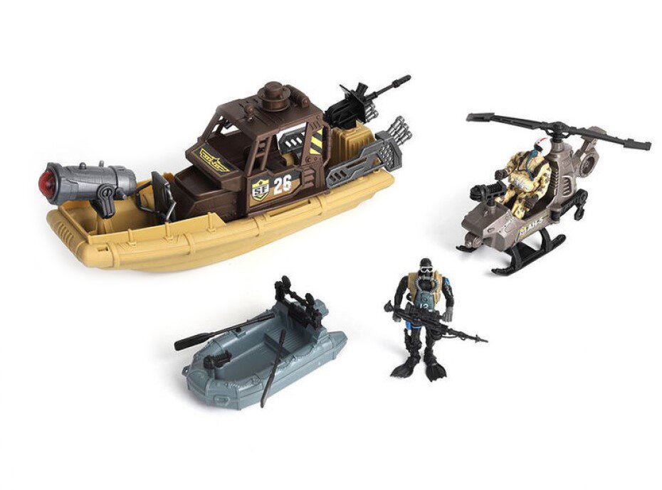 Захоплюючий ігровий набір Chap Mei Солдати Ocean Patrol запрошує дитину в цікаву сюжетно-рольову гру на військову тематику. Має звукові і світлові ефекти.