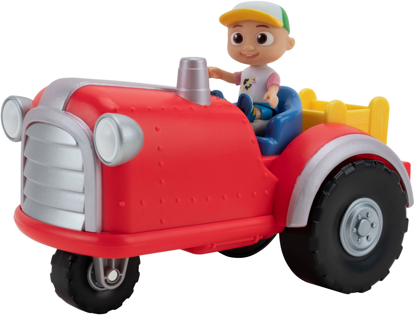 Ігровий набір CoComelon Feature Vehicle Трактор зі звуком. Чи готові до музичної прогулянки фермою з трактором CoComelon? Цим яскравим кольоровим трактором керує Джей-Джей — популярний персонаж із навчальної серії CoComelon. До того ж ця музична іграшка CoComelon містить будь-яку 6-сантиметрову фігурку CoComelon.