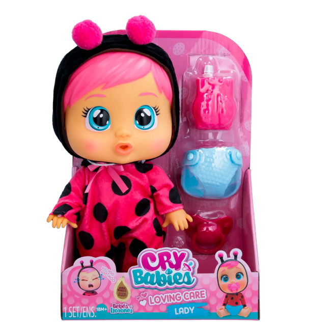 Cry babies — це серія ляльок-немовлят, кожна з яких має свій неповторний вигляд та характер. Вони плачуть справжніми сльозами. Заповніть резервуар водою (в голові ляльки), а потім натисніть на голову ляльки, щоб вона почала плакати.
