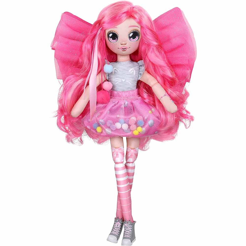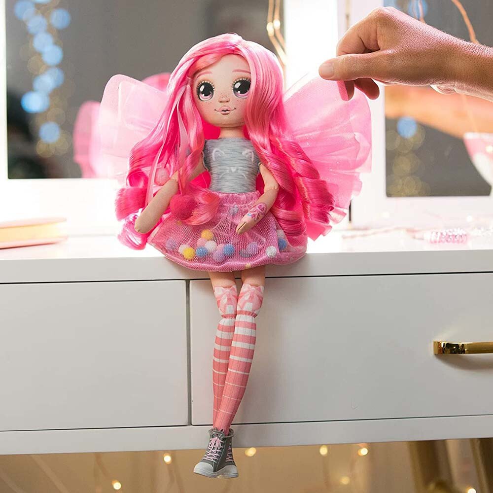 У наборі: М’яка лялька-фея з крилами заввишки 36 см. Стрічка для волосся, що знімається. Гребінець та 3 шпильки для волосся. Пара взуття, що знімається. Спідниця з помпонами, що знімається. Пакування-стенд для ляльки з кишенею для запису та зберігання мрій.