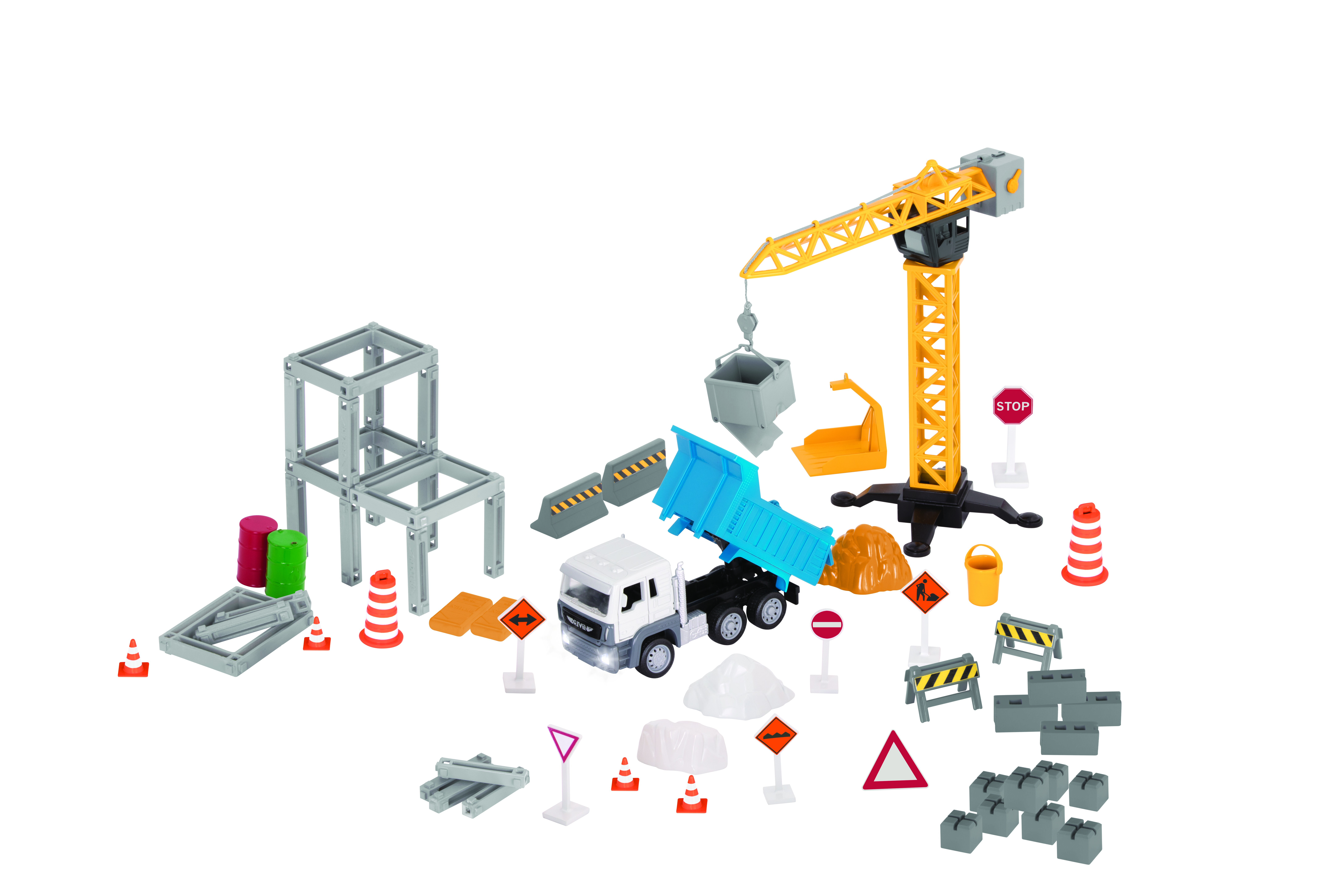 З цим набором можна створити безпечний будівельний майданчик з попереджувальними знаками і краном для переміщення важких вантажів.