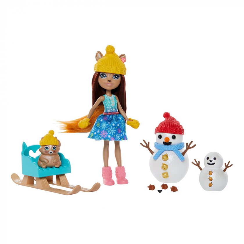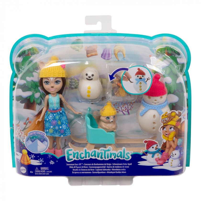 Створіть свій світ Enchantimals — світ чудес, чарівних істот, взаємодопомоги і пригод. Побудуйте сніговика разом з Білочкою Шарлоттою і її маленьким другом Волнатом. Розігруйте класичні зимові сценки з Ігровим набором Enchantimals Білочка і Сніговички. Білочка Шарлотта одягнена в зимовому стилі і готова до неймовірних пригод в своїх санях. Великого сніговика можна прикрашати нескінченну кількість разів завдяки кнопкам у вигляді жолудів, морквини і паличок. Зберіть всю колекцію ляльок Enchantimals для нових історій про яскравий світ чарівниць та їхніх маленьких друзів. Яскравий ігровий набір розвиває фантазію та уяву дитини, вчить її дружбі та підтримці, стимулює дрібну моторику рук і розширення словникового запасу.