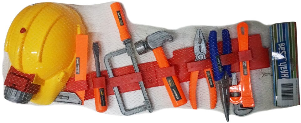 З цим набором інструментів дитина зможе почуватися справжнім майстром. До набору входить усе потрібне для усунення побутових проблем: каска, молоток, викрутка, плоскогубці та багато інших інструментів. На касці розміщено ліхтарик, що дасть змогу розгледіти навіть найдрібніше зламання.