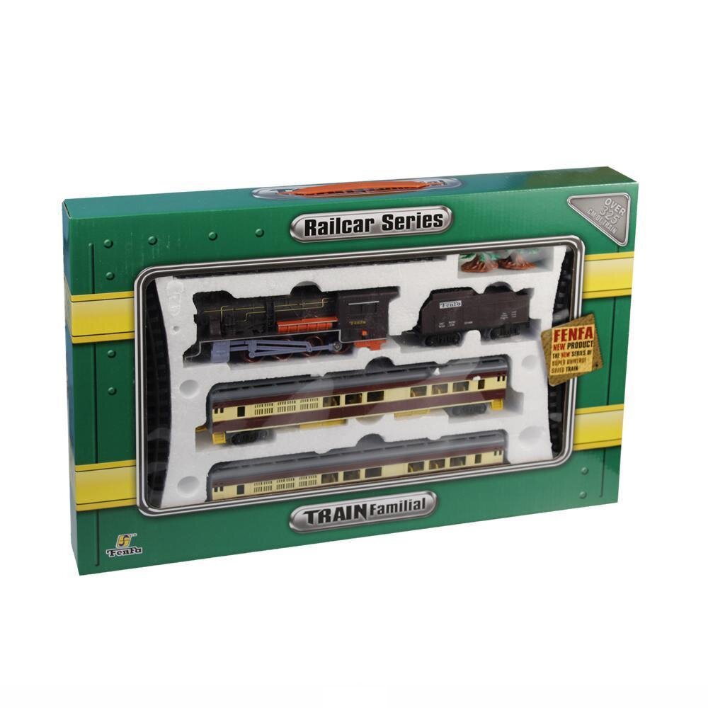 Набір дитячої залізниці включає в себе потяг, вагони, рейки та аксесуари. Рейки можна викласти різною конфігурацією. В даному наборі можливо зібрати дорогу трьома різними способами.