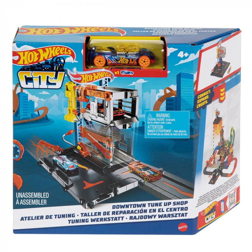 Після боротьби зі злими чудовиськами, що напали на місто Hot Wheels, відвідайте авторемонтну майстерню в центрі міста, щоб підготувати машини до подальших пригод! Заїжджайте на підйомник і підніміть важіль, щоб добре оглянути ходову частину. Виконайте все необхідне технічне обслуговування, наприклад, заправку, ремонт двигуна або огляд шин, перш ніж вирушити на пошуки нових пригод. З'єднується з іншими наборами Hot Wheels у кількох місцях кріплення (кожний набір продається окремо). З'єднайте автомайстерню з іншими наборами Hot Wheels, щоб побудувати унікальний світ, повний розваг, пригод та крутих функцій, які зроблять гру ще цікавішою.