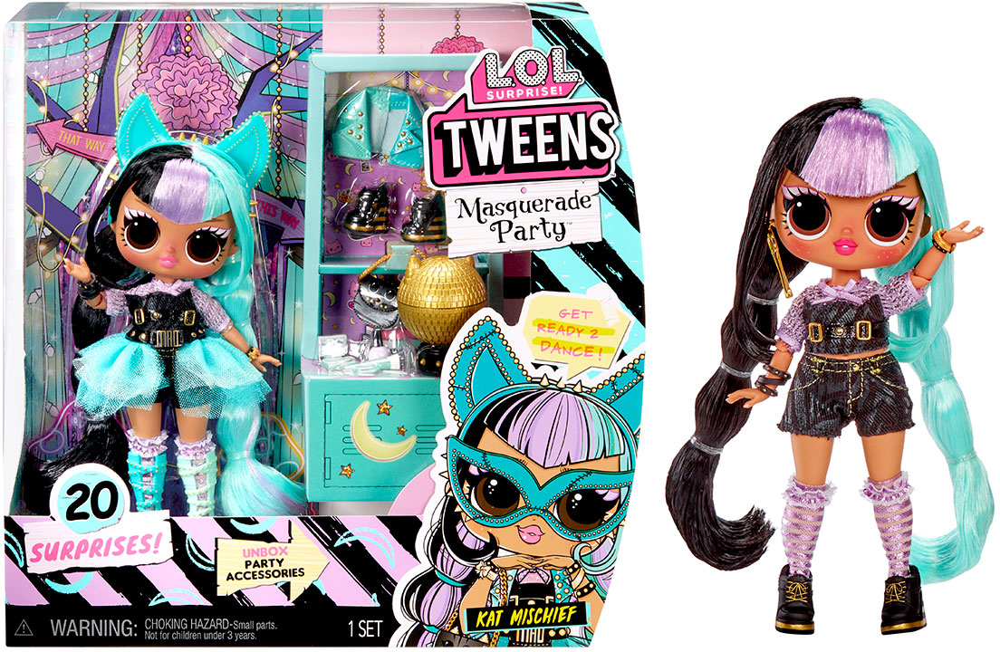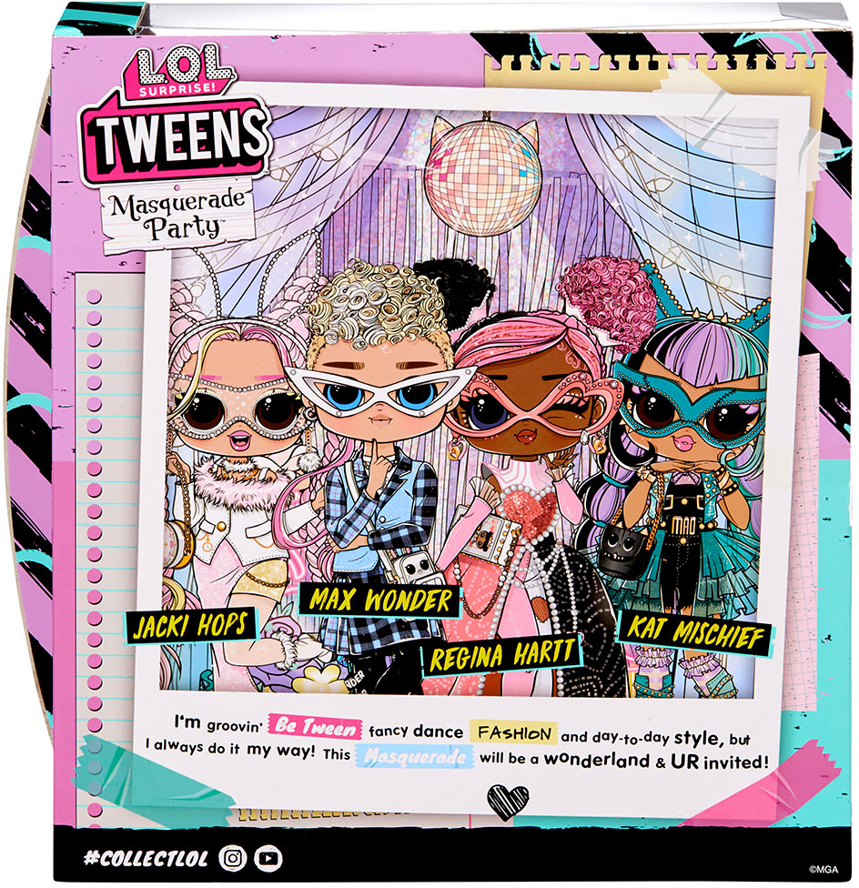 Модні красуні збираються на бал-маскарад! Допоможіть їм підібрати найкращий та найяскравіший костюм! Ігровий набір із лялькою L.O.L. Surprise! серії "Tweens" – Кет Місчіф – це чарівна лялечка у чарівному образі кролика та 20 сюрпризів!