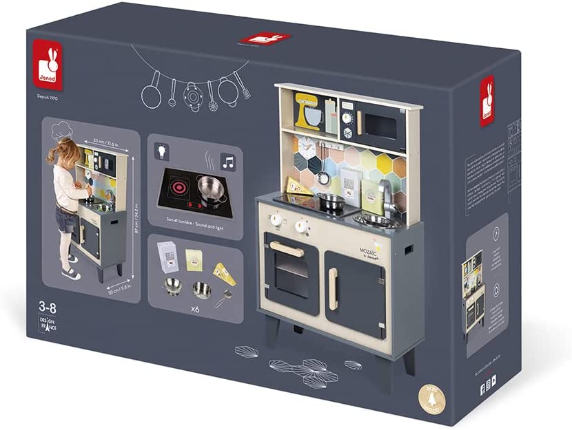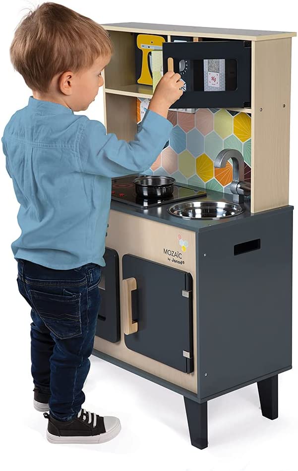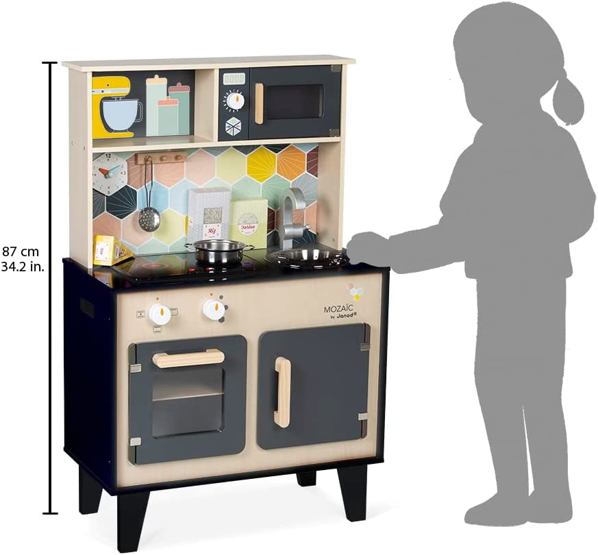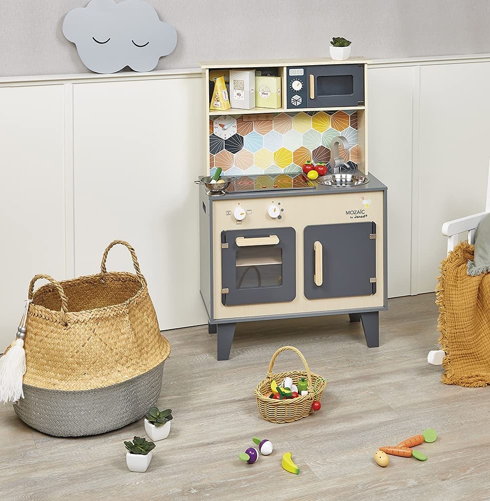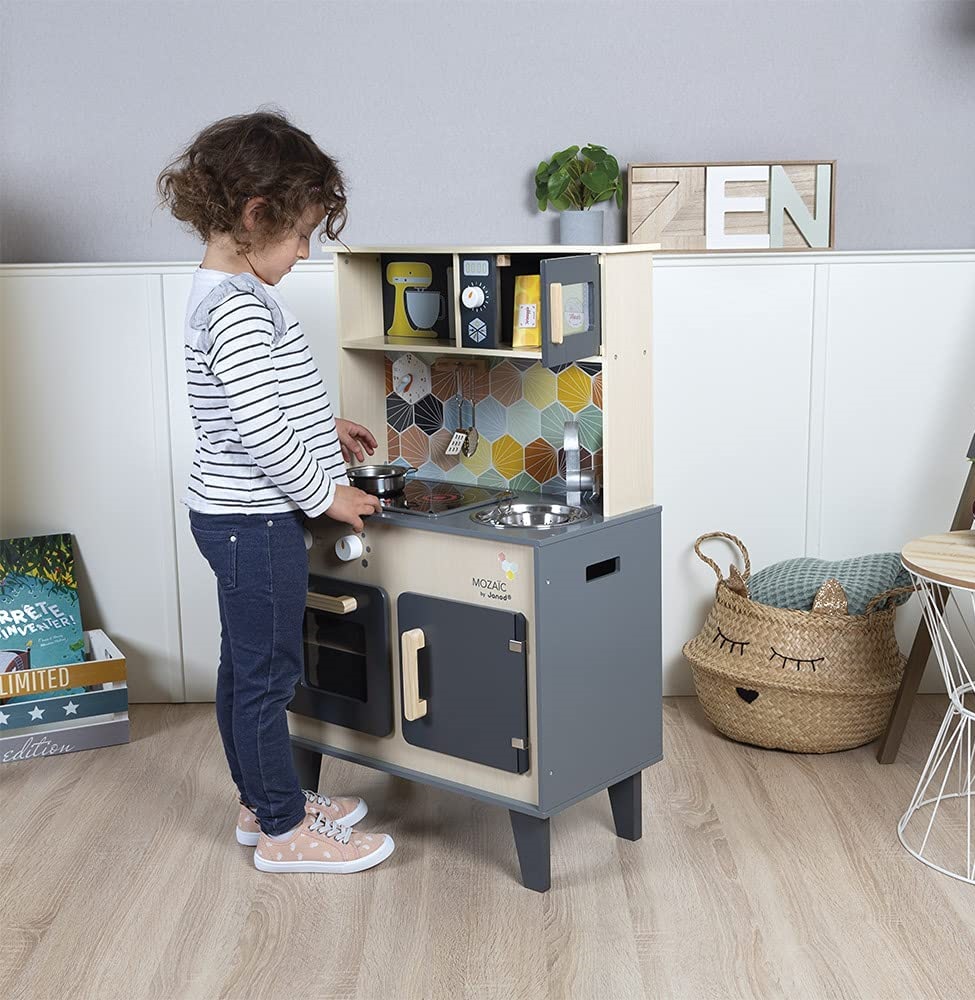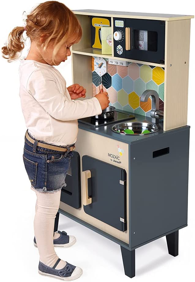 Дитячий кухонний гарнітур з справжнім характером! Красиве поєднання натурального дерева, чорної фарби і кольорової мозаїки надає всьому цьому дійсно стильний вигляд. Діти, які творять на такій кухні, обов'язково придумають кілька новаторських рецептів! Так що дайте волю їх уяві і подивіться, як далеко може понести їх натхнення від мами і тата!