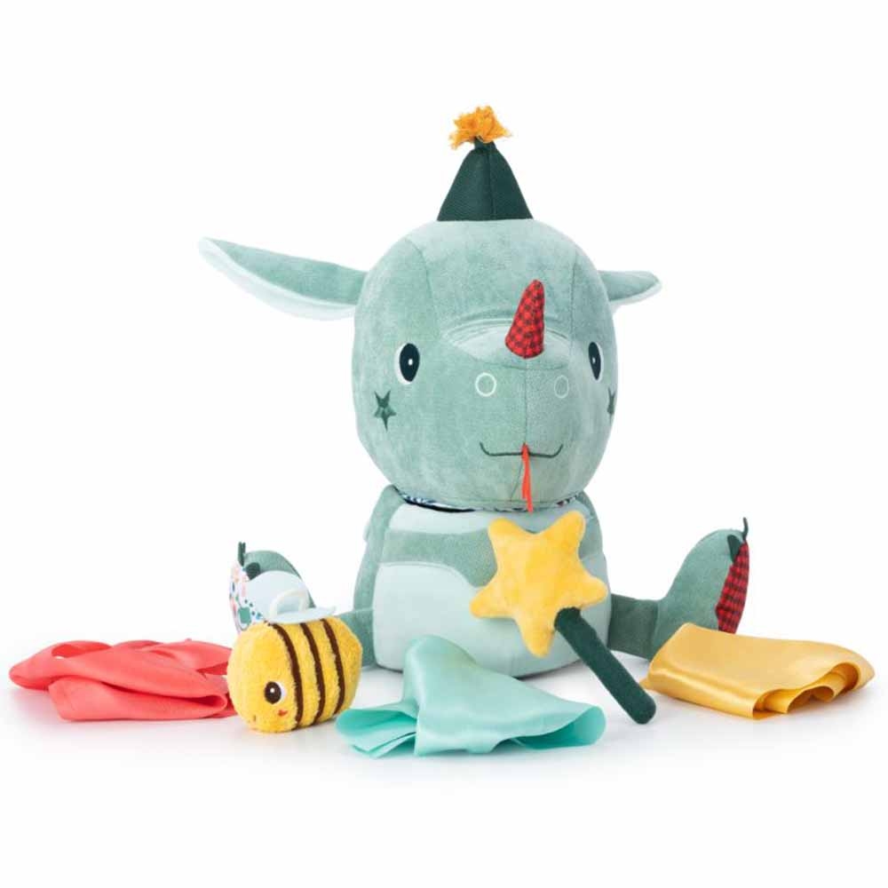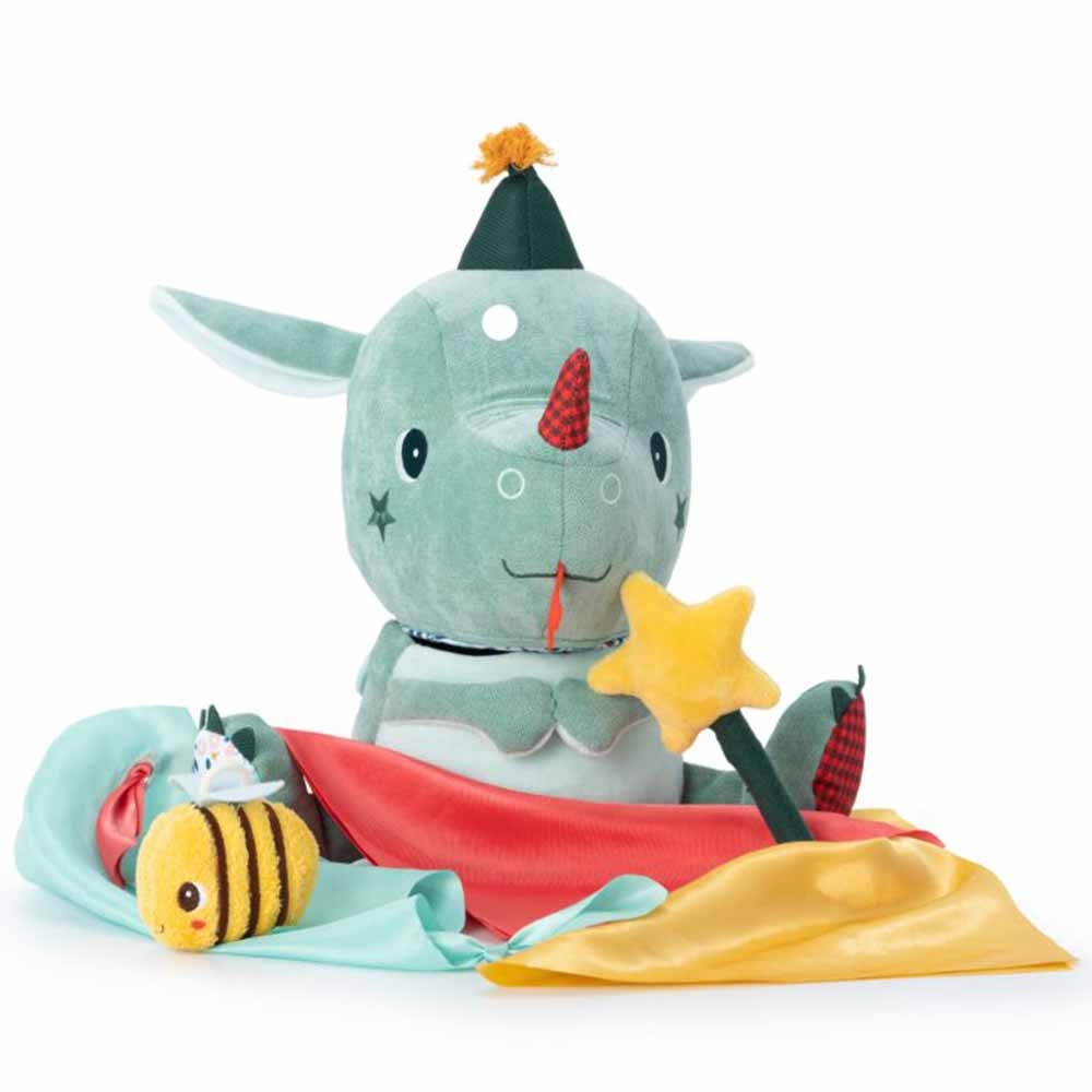 Ігровий набір Lilliputiens Чарівник Дракончик Джо (83450) включає безліч розвиваючих елементів і ідеально підходить для перших ігор. Подивіться на цього завзятого персонажа, різнофактурні тканини та ідеально підібрані кольори, він так і привертає увагу малюка. Його троє друзів оснащені безпечним дзеркальцем, прорізувачем, звуком шарудіння і брязкальцем. Крім цього, дракончика можна годувати, а потім діставати персонажів назад. Подаруйте дитині цілий центр раннього розвитку.