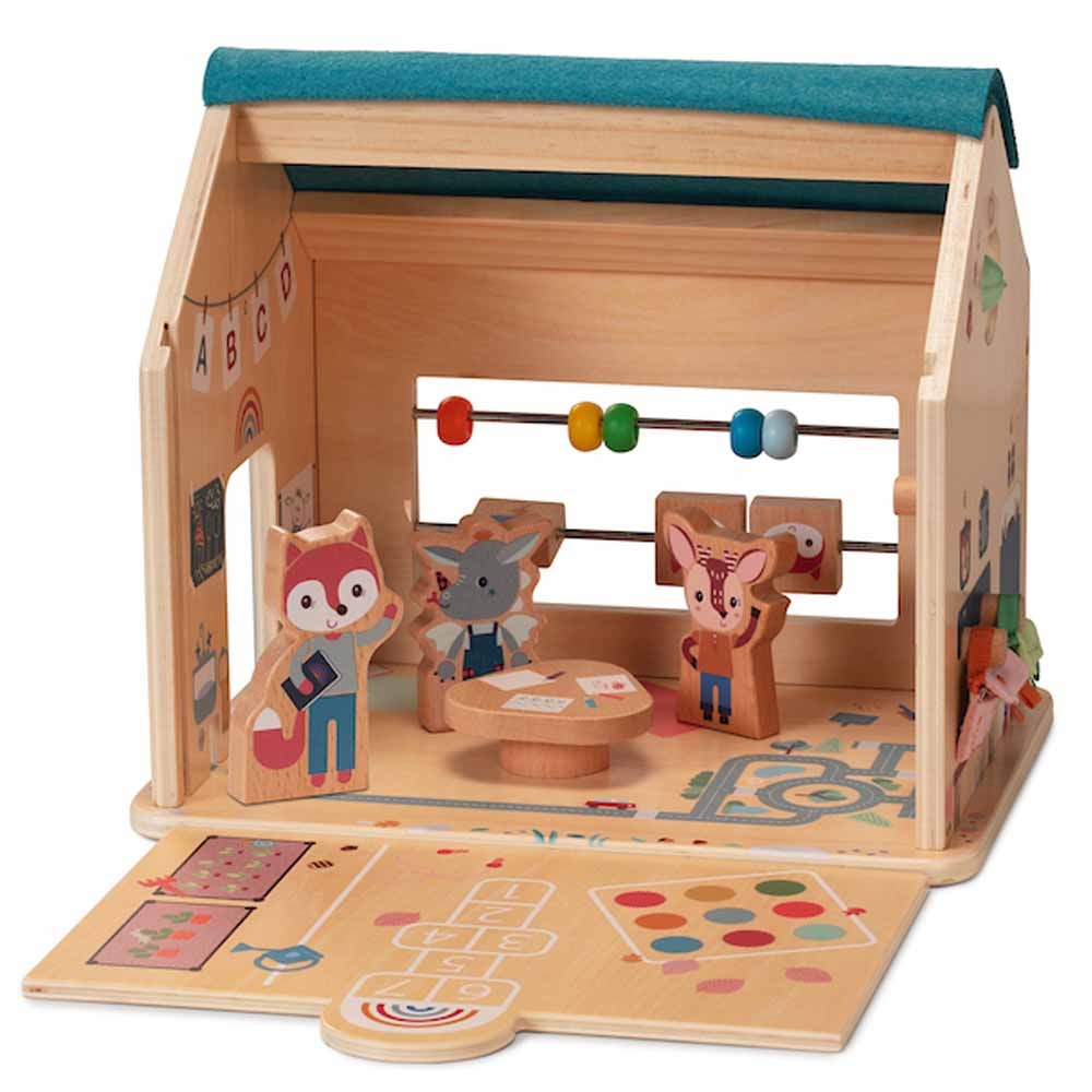 Ця красива дерев'яна школа включає всі елементи для відтворення шкільного дня.